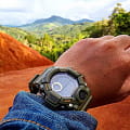 Модель серии Rangeman отличается защитной расцветкой хаки с жёлтыми деталями, брендовый аксессуар с массивными элементами оформления точно станет запоминающейся деталью образа. Наручные часы оснащены различными функциями, которые по достоинству оценят любители путешествовать: отображение восхода и заката солнца, термометр -10°C /+60°C, барометр, высотомер, таймер, мировое времяМировое время Полезное часовое усложнение, отображающее время в основных городах и известных областях по всему миру, оно связано с часовыми поясами, удобно для путешественников и бизнесменов. , 5 будильников, секундомер, цифровой компас. Японский кварцевый механизм. Технология . Индикатор уровня заряда аккумулятора. Ударопрочный корпусУдаропрочный корпусМеханизм заключён в корпус, выполненный из современных материалов, устойчивых к ударам, механическим повреждениям и падению с высоты: инновационный пластик, карбон, нержавеющая сталь, титан. из пластика. Минеральное стекло. Водозащита 20 бар. Автоматическая светодиодная подсветкаСветодиодная подсветкаСветодиодная или LED-подсветка обеспечивает появление яркого холодного свечения за счёт LED-элементов - маленьких лампочек. Они потребляют минимальное количество энергии, чаще всего можно встретить 1 светодиод, в нижней части циферблата.. Габариты: 55,2 x 53,5 x 18,2 мм.