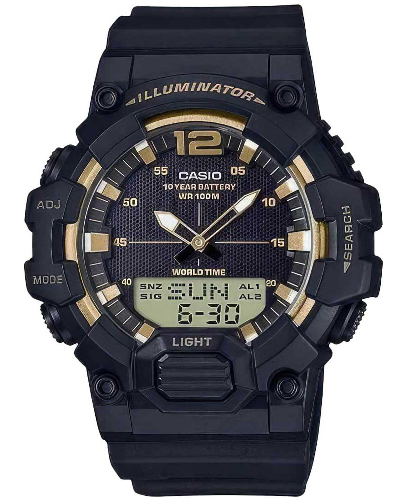 Спортивные японские мужские наручные часы с хронографомХронографФункция позволяет измерять отрезки времени с особой точностью: часы, минуты, секунды. Верным признаком хронографа является наличие на циферблате 3 дополнительных окошек-счётчиков. Casio Collection HDC-700-9A, кварцевый механизм с высокой точностью. Класс водозащиты: 100 метров, позволит плавать, нырять и заниматься другими водными видами спорта. Корпус часов изготовлен из пластика. Пластиковый ремешок на стандартной застёжке. Циферблат подсвечивается светодиодомСветодиодная подсветкаСветодиодная или LED-подсветка обеспечивает появление яркого холодного свечения за счёт LED-элементов - маленьких лампочек. Они потребляют минимальное количество энергии, чаще всего можно встретить 1 светодиод, в нижней части циферблата.. Записная книжка на 30 ячеек памяти для записи имен и телефонных номеров, каждая запись может включать в себя текст из 8 букв и 16 цифр. Мировое времяМировое время Полезное часовое усложнение, отображающее время в основных городах и известных областях по всему миру, оно связано с часовыми поясами, удобно для путешественников и бизнесменов. – 30 городов (29 часовых поясов). Функция включения/отключения летнего времени. 12-ти и 24-х часовой формат времени. СекундомерСекундомерСекундоме́р — прибор, способный измерять интервалы времени с точностью до долей секунды. с точностью показаний 1/100с и временем измерения 24ч. Сплит-хронографХронографФункция позволяет измерять отрезки времени с особой точностью: часы, минуты, секунды. Верным признаком хронографа является наличие на циферблате 3 дополнительных окошек-счётчиков.. ТаймерТаймерОтсчитывает секунды в обратном направлении в заданном интервале времени. обратного отсчета от 1мин до 24ч. Функция включения/отключения звука.