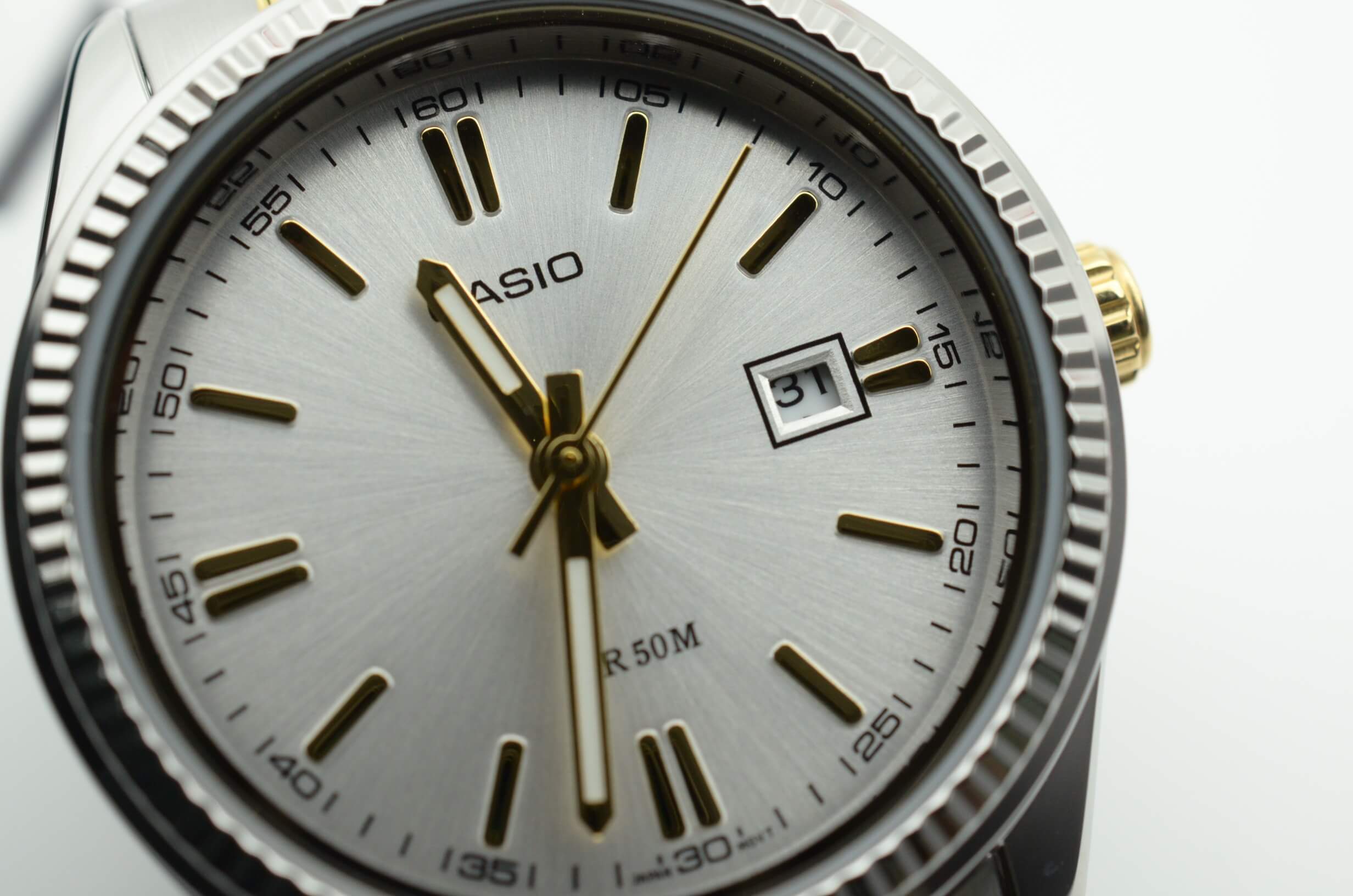 Японские женские кварцевые часы с минеральным стекломМинеральное стеклоМинеральное стекло представляет собой искусственно выращенный минерал кварца. Такое стекло отличается особой устойчивостью к повреждениям и царапинам. Уступает по некоторым качествам сапфировому стеклу. Casio Collection MTP-V004G-7B2, кварцевый механизм с высокой точностью. Практичные и удобные в использовании часы. Отличный аксессуар в стиле casual. Standard Analog. Корпус часов изготовлен из нержавеющей стали. Стрелки с необритовым покрытиемПодсветка NeobriteИспользование светонакопительных составов на основе сульфида цинка или алюмината стронция, яркий свет можно наблюдать на протяжении 6-10 часов после «зарядки» часов около источника света.. Необритовое светонакопительное покрытие обеспечивает длительное послесвечение в темноте даже после кратковременного нахождения на свету. Окошко даты находится в положении 3 часа. Класс водозащиты: 50 метров, позволит защитить корпус от случайных брызг или капель дождя. Стальной браслет с IP-покрытиемIP-покрытиеМетод ионного напыления. Демонстрирует повышенную устойчивость к истиранию, окислению и химическим веществам. Под воздействием высокого давления и температуры около 1500°C молекулы металла надёжно соединяются с частицами корпуса часов. на раскладной застёжкеРаскладная застёжкаТакой тип застёжки используется только на браслетах из металла. Она никогда не раскрывается полностью, происходит разделение на 2 и более частей. Раскладывающая застёжка снизит вероятность потери часов к минимуму..