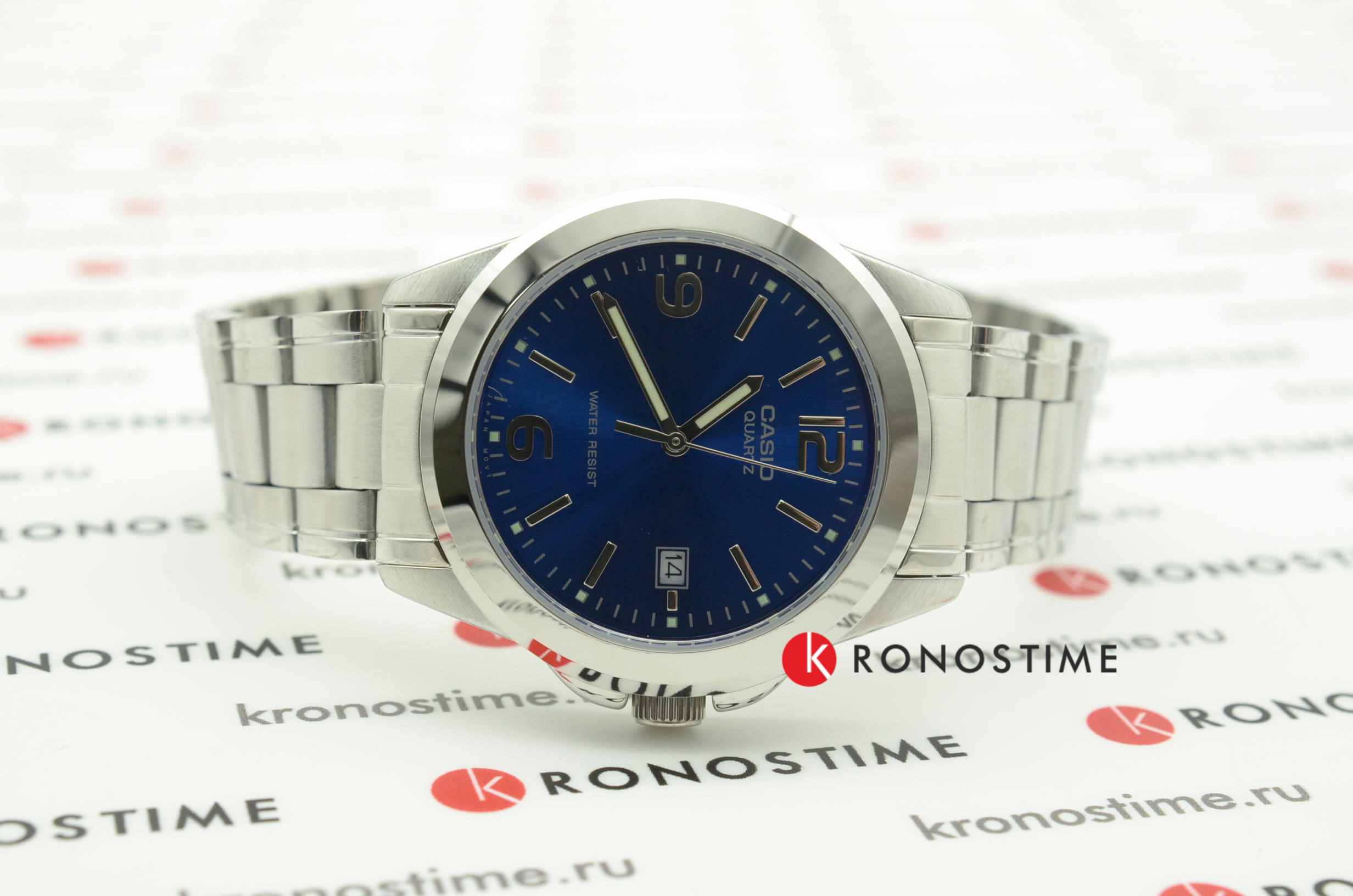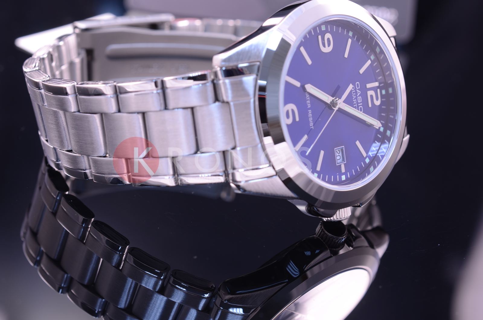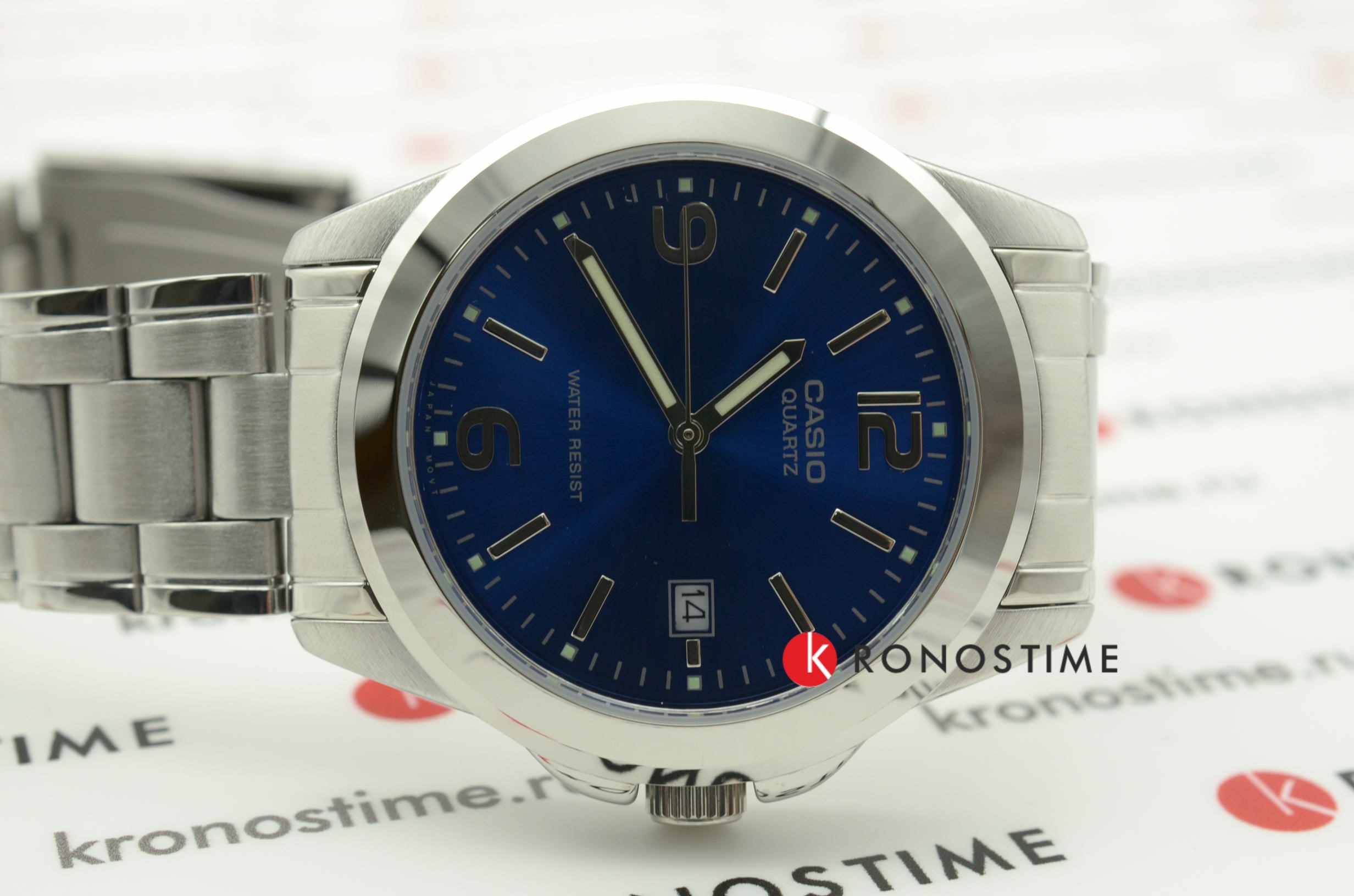 Данная модель от Casio придется по вкусу ценителям высокого качества, комфорта и сдержанного дизайна. Корпус выполнен из латуни. Стальной браслет прочно обхватывает запястье и закрепляется с помощью раскладывающейся застежки. Синий циферблат традиционной формы обрамляет аккуратный безельБезельВнешний ободок, закрепляющий стекло. В спортивных часах так называется поворотное кольцо с делениями на циферблате, выполняет роль таймера – замеряет отрезки времени на шкале. Неподвижный безель – элемент декора. Однонаправленно вращающийся безель на дайверских часах позволяет фиксировать моменты погружения и выныривания на поверхность.. Есть небольшое окошечко с календарем. Крупные отчетливые временные отметки сделаны в виде штрихов и арабских цифр. Подсветка NeobriteПодсветка NeobriteИспользование светонакопительных составов на основе сульфида цинка или алюмината стронция, яркий свет можно наблюдать на протяжении 6-10 часов после «зарядки» часов около источника света. обеспечивает видимость показателей в темное время суток. Тип механизма - кварцевый. Вес составляет 92 грамма.