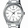 Японские мужские часы из коллекции MTP Collection воплощают собой классику в современном исполнении, минималистичное оформление позволяет носить часы в качестве дополнения к повседневному, деловому, повседневному образу. Лаконичный белый циферблат с серебристыми стрелками и метками никогда не утратит актуальности. Элегантности добавляет фактурный безельБезельВнешний ободок, закрепляющий стекло. В спортивных часах так называется поворотное кольцо с делениями на циферблате, выполняет роль таймера – замеряет отрезки времени на шкале. Неподвижный безель – элемент декора. Однонаправленно вращающийся безель на дайверских часах позволяет фиксировать моменты погружения и выныривания на поверхность.. Браслет сделан из нержавеющей стали 316L, отличающейся устойчивостью к царапинам и износу, для корпуса была выбрана гипоаллергенная латунь. Кварцевый механизм с высокой точностью хода. Водостойкость 50 метров. Стрелки с люминесцентным покрытиемЛюминесцентное покрытиеПозволяет считывать показания времени в темноте. Производители наносят на стрелки, часовые индексы, безель или поверхность циферблата светонакопительный состав, дающий холодное свечение.. Минеральное стекло. Апертура даты. Габариты: 44,2 x 38,5 x 9,2 мм.