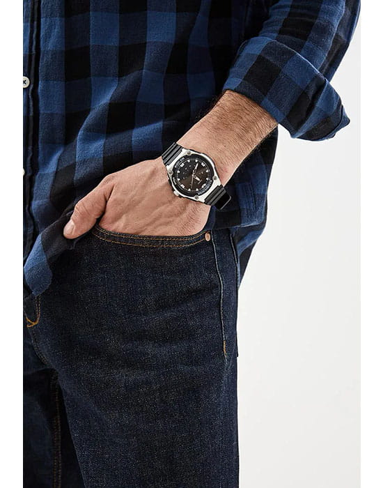 · Водонепроницаемость (10 Бар) (Идеально подходит для плавания с маской и трубкой: часы являются водонепроницаемыми до 10 Бар/на глубине до 100 метров. Значение метров не относится к глубине погружения, но относится к атмосферному давлению, используемого в процессе испытания на водонепроницаемость (ISO 2281). Фактическая глубина погружения не более 5 метров, нажатие кнопок под водой, равно как и открытие переводной коронки запрещено);