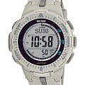 Модуль часов рассчитан на работу при низких температурах до -10°С/14°F. Циферблат подсвечивается ярким светодиодом, при недостаточном освещении во время поворота запястья в сторону лица подсветка включается автоматически. Мировое время включает 48 городов (31 часовой пояс), всемирное координированное время (UTC). Функция включения/отключения летнего времени. 12-ти и 24-х часовой формат времени. Время восхода и захода Солнца. Технология Triple Sensor позволяет точно и легко определять сторону света, температуру и атмосферное давление. Встроенный цифровой компас. Высотомер - встроенный датчик барометрического давления с возможностью вывода результатов в единицах высоты над уровнем моря (от -700 до 10000 метров). График набора высоты. Память данных высотометра - каждая из записей состоит из измеренной абсолютной высоты, даты и времени. SPLIT-хронограф. Секундомер с точностью показаний 1/10с и временем измерения 1000ч. Таймер обратного отсчета от 1 минуты до 24 часов.