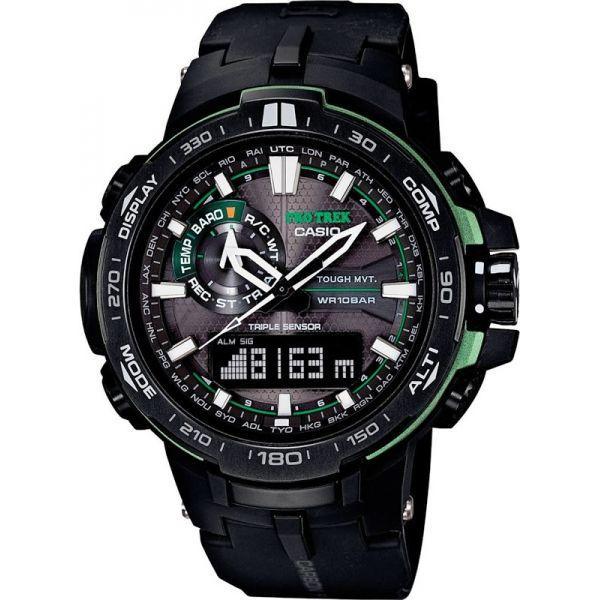 Невероятно брутальные, высокотехнологичные часы от японского бренда Casio PRW-6000Y-1A из серии Pro Trek. Разработаны специально для людей, занимающихся активным отдыхом и туризмом. Источник питания от солнечной батареи и функция сохранения энергии позволит вам не думать о подзарядке в течении 23 месяцев. Модуль часов позволяет им работать при низких температурах. Функция двойной иллюминатор обеспечивает подсветку всего цифрового дисплея. Коррекция текущего времени по радиосигналу.