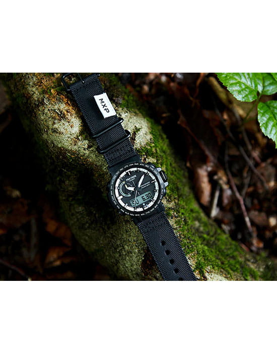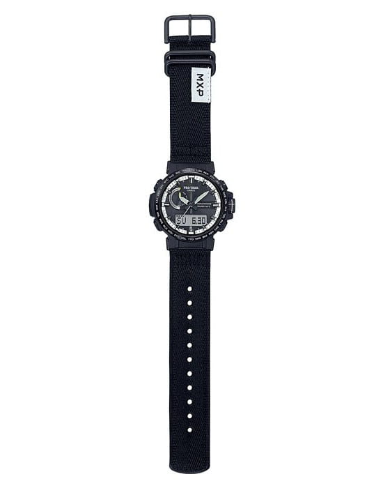 По сравнению с предыдущими моделями линейки Casio PRW-6000 аксессуар получился более тонким и компактным. Наручные часы выполнены в спортивном стиле, тёмный циферблат дополнен контрастными элементами. Ударопрочный корпусУдаропрочный корпусМеханизм заключён в корпус, выполненный из современных материалов, устойчивых к ударам, механическим повреждениям и падению с высоты: инновационный пластик, карбон, нержавеющая сталь, титан. выполнен из полимера, такой материал отлично поглощает силу удара и вибрации. Стильно выглядит текстильный ремешок, обеспечивающий комфорт при ношении. Питание от солнечной энергии , есть индикатор уровня заряда батарейки. Минеральное стекло. Водозащита 10 бар. Функционал: барометр, высотомер с памятью данных, таймер, термометр, будильник, мировое времяМировое время Полезное часовое усложнение, отображающее время в основных городах и известных областях по всему миру, оно связано с часовыми поясами, удобно для путешественников и бизнесменов. , компас. Светодиодная подсветкаСветодиодная подсветкаСветодиодная или LED-подсветка обеспечивает появление яркого холодного свечения за счёт LED-элементов - маленьких лампочек. Они потребляют минимальное количество энергии, чаще всего можно встретить 1 светодиод, в нижней части циферблата. экрана, стрелки с люминесцентным покрытиемЛюминесцентное покрытиеПозволяет считывать показания времени в темноте. Производители наносят на стрелки, часовые индексы, безель или поверхность циферблата светонакопительный состав, дающий холодное свечение.. Габариты: 50,5 x 47,2 x 12 мм.
