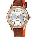Наручные часы имеют элегантный дизайн, что делает их актуальным вариантом на долгие годы. Римские цифры наделяют модель оттенком винтажа, в качестве декора используются кристаллы Swarovski. Японский кварцевый механизм отличается высокой точностью хода. Яркая деталь – двухцветный ремешок из натуральной кожи. Возможности: отображение даты, люминесцентная подсветкаЛюминесцентное покрытиеПозволяет считывать показания времени в темноте. Производители наносят на стрелки, часовые индексы, безель или поверхность циферблата светонакопительный состав, дающий холодное свечение..
