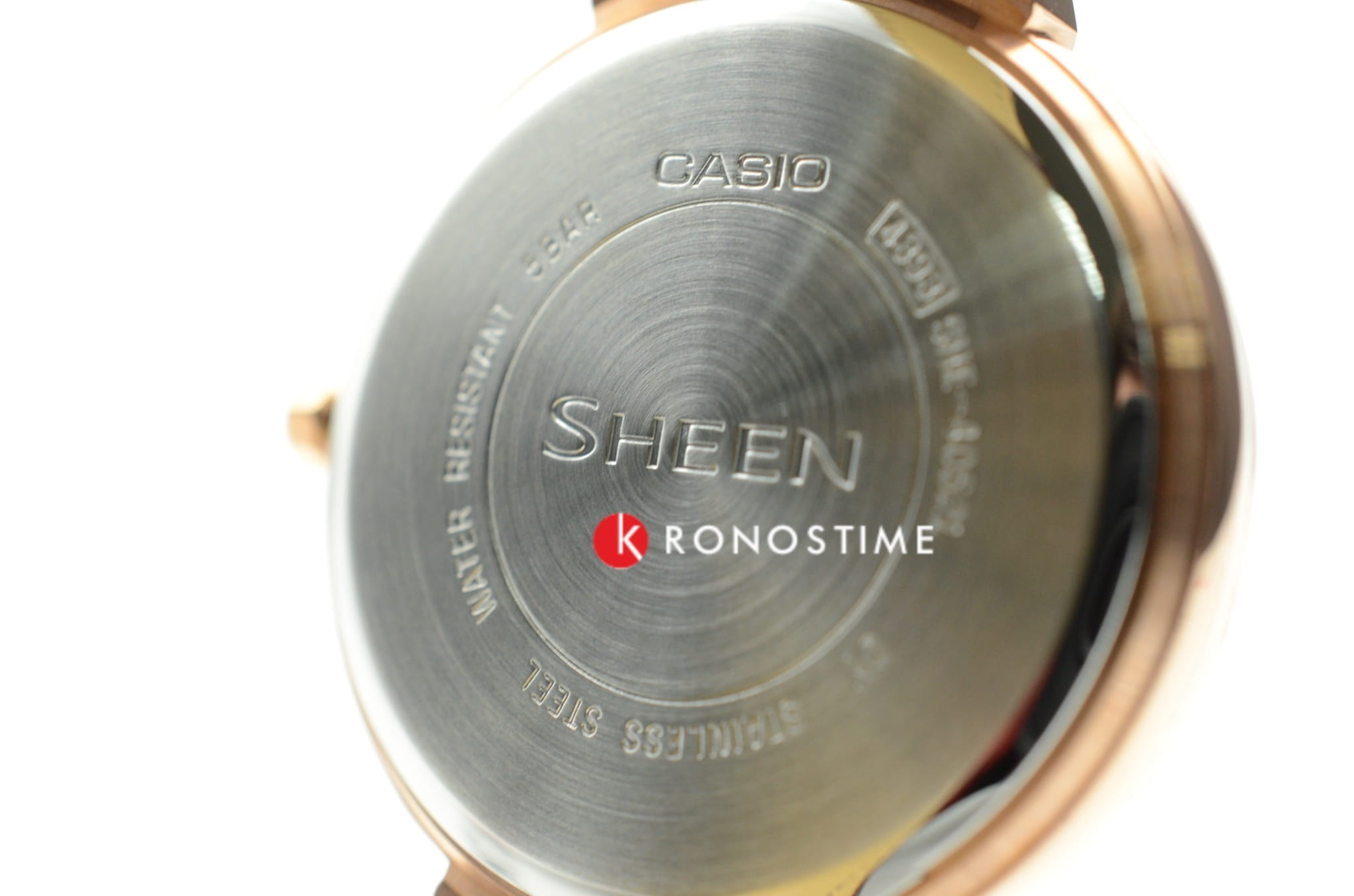 Привлекательный экстерьер - это далеко не единственное преимущество Casio Sheen Часы могут отображать время, они способны погружаться в воду на глубину до 50 метров, а стильный циферблат, украшенный камнями от Swarovski, надежно укреплен минеральным стеклом, защищающим часы от практических любых механических повреждений