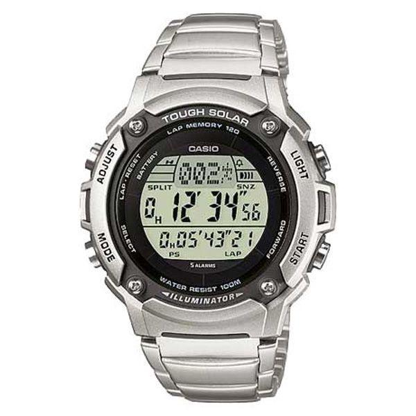 Спортивные мужские часы. Питание от солнечной энергии, индикатор уровня зарядки батареи. Функция автоматического сохранения энергии (отключает LCD дисплей). Время работы аккумулятора без подзарядки - 11 месяцев, при включенной функции сохранения энергии - 38 месяцев. Оснащены: секундомером, отображением времени в двух часовых поясах, таймером, календарем, будильником, подсветкой. Корпус - Пластиковый; Стекло - Минеральное; Водозащита - 100 м. (WR 100); Материал ремешка - Сталь; ; Цвет циферблата - Lcd.
