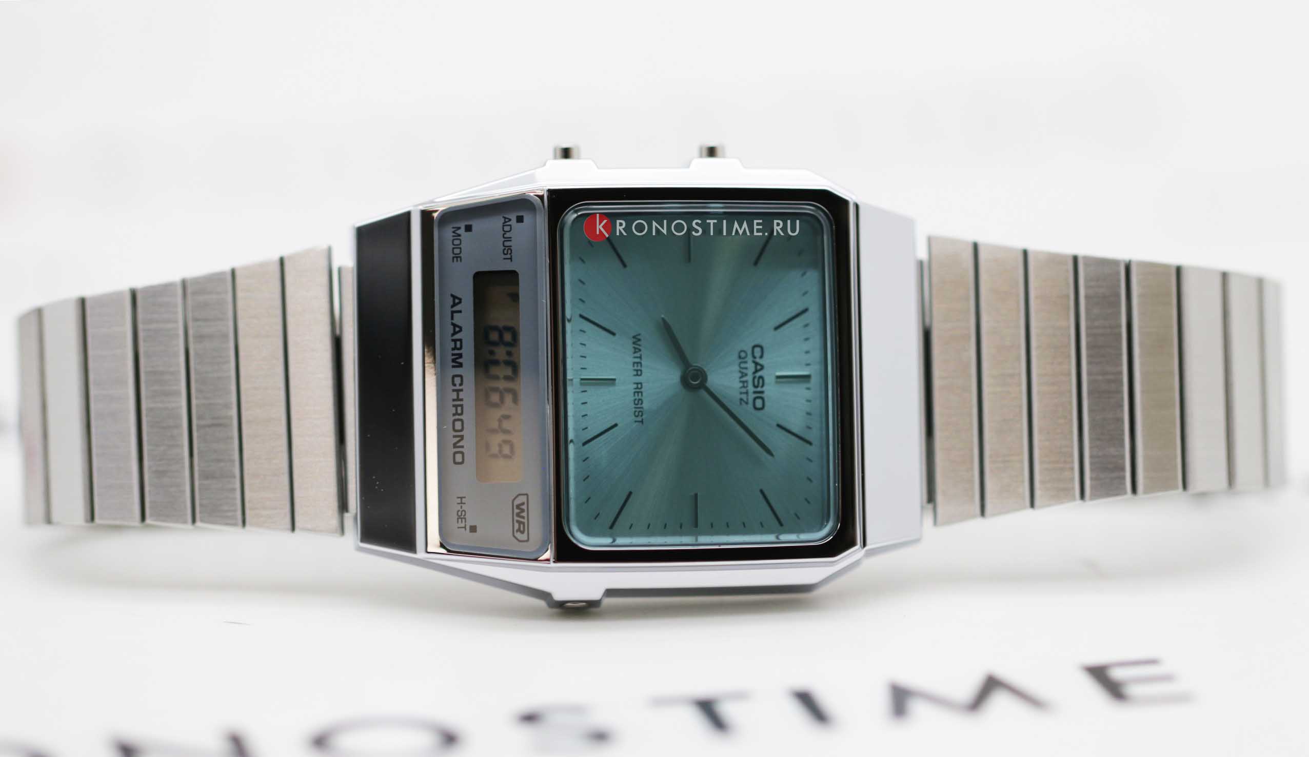 Спортивные японские унисекс часы с секундомеромСекундомерСекундоме́р — прибор, способный измерять интервалы времени с точностью до долей секунды. Casio Vintage AQ-800EC-2A, кварцевый механизм с высокой точностью. Класс водозащиты: 30 метров, позволит защитить корпус от случайных брызг или капель дождя. Корпус часов изготовлен из пластика серебристого цвета. На белом циферблате центральные часовая и минутная стрелки. Отдельно вынесен дополнительный циферблат мирового времениМировое время Полезное часовое усложнение, отображающее время в основных городах и известных областях по всему миру, оно связано с часовыми поясами, удобно для путешественников и бизнесменов. , позволяющий одновременно отобразить время двух часовых поясов. У модели присутствуют функции секундомераСекундомерСекундоме́р — прибор, способный измерять интервалы времени с точностью до долей секунды. с точностью 1/100 секунды и пределом измерения 1 час, ежедневного будильникаБудильникБуди́льник — часы, в заданный момент времени подающие звуковой, световой и/или в редких случаях другой сигнал.. Стальной браслет с регулируемой застежкой.