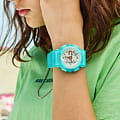 Модель пригодится для летних прогулок и вечеринок, стильно смотрятся. С ним вы точно не останетесь незамеченной. Аксессуар наделит гардероб свежестью и яркостью, привлечёт к вам внимание окружающих. Наручные часы имеют противоударный корпусУдаропрочный корпусМеханизм заключён в корпус, выполненный из современных материалов, устойчивых к ударам, механическим повреждениям и падению с высоты: инновационный пластик, карбон, нержавеющая сталь, титан. из полимерного материала, что позволяет им быть устойчивыми к повреждениям, вибрации, падению с высоты. Японский кварцевый механизм работает от батарейки с 2-летним сроком службы, он позволяет измерять время с точностью хода +/- 30 секунд в месяц. Для защиты циферблата со светодиодной подсветкойСветодиодная подсветкаСветодиодная или LED-подсветка обеспечивает появление яркого холодного свечения за счёт LED-элементов - маленьких лампочек. Они потребляют минимальное количество энергии, чаще всего можно встретить 1 светодиод, в нижней части циферблата. используется минеральное стекло, устойчивое к образованию царапин. Водостойкость 10 бар позволяет не снимать аксессуар во время плавания. Полимерный ремешок отличается мягкостью и гибкостью. Возможности: включение и выключение звука кнопок, таймер обратного отсчёта, хронографХронографФункция позволяет измерять отрезки времени с особой точностью: часы, минуты, секунды. Верным признаком хронографа является наличие на циферблате 3 дополнительных окошек-счётчиков., секундомер, ежечасный сигнал, 5 будильников, вечный календарьВечный календарьКлассическое часовое усложнение, представляющее собой календарь, рассчитанный на несколько лет вперёд (стандартно – до 2099 года). Определяет текущую дату, день недели, месяц.. Габариты: 46,3 x 43,4 x 15,8 мм.