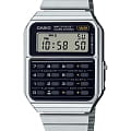 Японские унисекс часы с хронографом Casio Vintage CA-500WE-1A, кварцевый механизм с высокой точностью. Корпус часов изготовлен из пластика, серебристого цвета. Светодиодная подсветкаСветодиодная подсветкаСветодиодная или LED-подсветка обеспечивает появление яркого холодного свечения за счёт LED-элементов - маленьких лампочек. Они потребляют минимальное количество энергии, чаще всего можно встретить 1 светодиод, в нижней части циферблата., секундомерСекундомерСекундоме́р — прибор, способный измерять интервалы времени с точностью до долей секунды. с точностью измерений 1/100 сек., общее время измерений 24 часа. Будильник с функцией Snooze. Автоматический календарь. 8-ми разрядный калькулятор. Класс водозащиты: 30 метров, позволит защитить корпус от случайных брызг или капель дождя. Браслет из стали на раскладной застёжкеРаскладная застёжкаТакой тип застёжки используется только на браслетах из металла. Она никогда не раскрывается полностью, происходит разделение на 2 и более частей. Раскладывающая застёжка снизит вероятность потери часов к минимуму.. Калькулятор позволяет производить различные математические вычисления, используя числа, содержащие до 8 знаков.