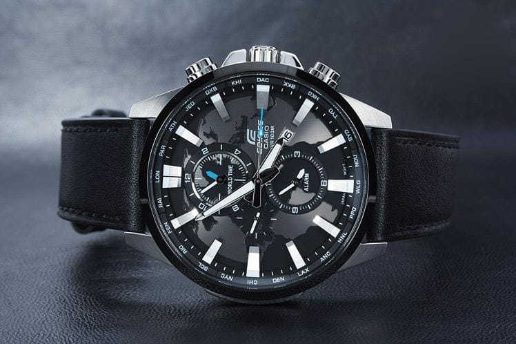 Часы CASIO EFR-303D-1A - мужские элегантные наручные часы из серии Casio Edifice. Круглый корпус, выполненный из стали, защищен минеральным стеклом, устойчивым к царапинам. Часы удерживаются на руке браслетом из высокопрочной стали с антикоррозийными свойствами. Многофункциональный кварцевый механизм, отображение второго часового пояса. Выступы на корпусе защищают переводную коронку. Люминисцентная подсветка стрелок и часовых меток.