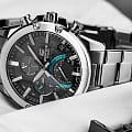 Ярко-бирюзовые цветовые акценты счётчиков гармонируют с тёмным фоном. Часы выполнены в спортивном стиле, ссылаясь на дизайн эксклюзивных спорткаров и автомобильных деталей. Они основаны на технологии , оснащены расширенными функциональными возможностями: BluetoothBluetoothСовременная технология, позволяющая синхронизировать часы с телефоном и переносить данные. Часы с Bluetooth расширяют возможности вашего смартфона и делают его использование ещё более удобным. нового поколения с низким потреблением энергии, автоматический календарь, хронографХронографФункция позволяет измерять отрезки времени с особой точностью: часы, минуты, секунды. Верным признаком хронографа является наличие на циферблате 3 дополнительных окошек-счётчиков., секундомер, индикатор последнего круга дистанции Last Lap Indicator, мировое время. Модель комплектуется надёжным браслетом из нержавеющей стали. Заводная головка с защитой. Ударопрочный корпусУдаропрочный корпусМеханизм заключён в корпус, выполненный из современных материалов, устойчивых к ударам, механическим повреждениям и падению с высоты: инновационный пластик, карбон, нержавеющая сталь, титан.. Сапфировое стекло с антибликовым покрытием. Водонепроницаемость WR 100. Подсветка NeobriteПодсветка NeobriteИспользование светонакопительных составов на основе сульфида цинка или алюмината стронция, яркий свет можно наблюдать на протяжении 6-10 часов после «зарядки» часов около источника света.. Габариты: 49,9 x 45,6 x 8,9 мм.