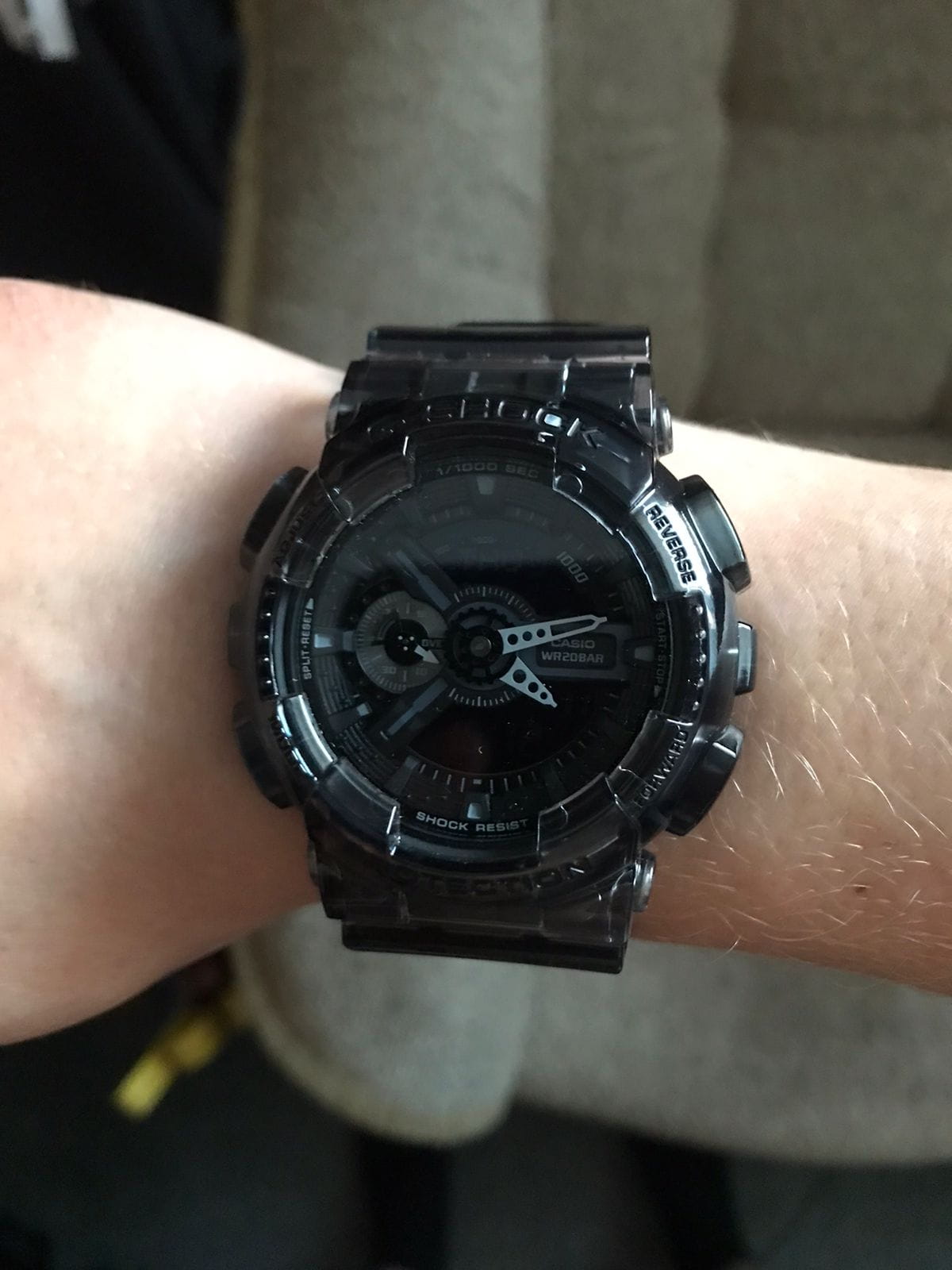 Casio GA-110SKE-8AER современные часы в ударопрочном корпусе, с удобным элементом управления в виде колеса прокрутки. Минеральное стекло, устойчивое к появлению царапин. Корпус часов выполнен в черной цветовой гамме, часы прочно удерживаются на руке браслетом из полимерного пластика. Часы GA-110SKE-8AER снабжены множеством дополнительных функций - повтор будильника, автоматический календарь. Ежечасный сигнал, повтор сигнала будильника, мировое время. Водонепроницаемость часов до 200 метров. Магнитоустойчивые.  Элемент питания CR1220, точность хода +\- 15 сек.в месяц.