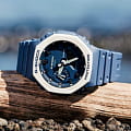 Мужские японские часы Casio G-Shock GA-2110ET-2AER из коллекции обрадуют ценителей надёжности и оригинальных вещей. Аксессуар в синем цвете поможет дополнить повседневный образ. Внимание перенимает на себя безельБезельВнешний ободок, закрепляющий стекло. В спортивных часах так называется поворотное кольцо с делениями на циферблате, выполняет роль таймера – замеряет отрезки времени на шкале. Неподвижный безель – элемент декора. Однонаправленно вращающийся безель на дайверских часах позволяет фиксировать моменты погружения и выныривания на поверхность., выполненный в форме октагона. Благодаря конструкции Carbon Core GuardCarbon Core Guard Новейшая структура корпуса, разработанная Casio. Полиуретановая пластина дополнительно усилена карбоновыми вставками, что придаёт специальную защиту от механических повреждений. Карбон отличается лёгкостью и прочностью. для тонкого ударопрочного корпусаУдаропрочный корпусМеханизм заключён в корпус, выполненный из современных материалов, устойчивых к ударам, механическим повреждениям и падению с высоты: инновационный пластик, карбон, нержавеющая сталь, титан. (11,8 мм) часы получили невероятную лёгкость, повышенную устойчивость к падению, повреждениям. Обновлённое крепление полимерного ремешка позволяет менять его в считанные секунды. Японский кварцевый механизм получает энергию от батарейки, рассчитанной на 3 года работы. ЛюминесцентнаяЛюминесцентное покрытиеПозволяет считывать показания времени в темноте. Производители наносят на стрелки, часовые индексы, безель или поверхность циферблата светонакопительный состав, дающий холодное свечение. и светодиодная подсветкаСветодиодная подсветкаСветодиодная или LED-подсветка обеспечивает появление яркого холодного свечения за счёт LED-элементов - маленьких лампочек. Они потребляют минимальное количество энергии, чаще всего можно встретить 1 светодиод, в нижней части циферблата.. Минеральное стекло. Сохранение водонепроницаемости до 10 бар. Будильник, хронографХронографФункция позволяет измерять отрезки времени с особой точностью: часы, минуты, секунды. Верным признаком хронографа является наличие на циферблате 3 дополнительных окошек-счётчиков., таймер, мировое времяМировое время Полезное часовое усложнение, отображающее время в основных городах и известных областях по всему миру, оно связано с часовыми поясами, удобно для путешественников и бизнесменов. , секундомер, вечный календарьВечный календарьКлассическое часовое усложнение, представляющее собой календарь, рассчитанный на несколько лет вперёд (стандартно – до 2099 года). Определяет текущую дату, день недели, месяц.. Габариты: 48,5 x 45,4 x 11,8 мм.