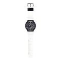 Мужские кварцевые часы Casio GA-B2100CD-1A7 — это лимитированная модель из коллекции G-Shock, посвящённая фауне Галапагосских островов. Модель выполнена в черном цвете с белым полимерным ремешком, а её размеры составляют 45,5x48,5 мм при толщине 11,9 мм. Корпус усилен углеродным волокном, изготовленным по технологии Carbon Core GuardCarbon Core Guard Новейшая структура корпуса, разработанная Casio. Полиуретановая пластина дополнительно усилена карбоновыми вставками, что придаёт специальную защиту от механических повреждений. Карбон отличается лёгкостью и прочностью., что делает его прочным и устойчивым к царапинам. Защиту механизма обеспечивает минеральное стеклоМинеральное стеклоМинеральное стекло представляет собой искусственно выращенный минерал кварца. Такое стекло отличается особой устойчивостью к повреждениям и царапинам. Уступает по некоторым качествам сапфировому стеклу., устойчивое к повреждениям. Стрелки покрыты необритовым люминесцентным напылениемПодсветка NeobriteИспользование светонакопительных составов на основе сульфида цинка или алюмината стронция, яркий свет можно наблюдать на протяжении 6-10 часов после «зарядки» часов около источника света., обеспечивающим длительное свечение даже после кратковременного нахождения на свету. Функциональность модели включает таймер обратного отсчёта, хронограф, секундомер с точностью 1/100 секунды, будильник, мировое время (48 городов, 31 часовой пояс), вечный календарь до 2099 года, функцию летнего времени (DST), сигнал начала часа, двойную диодную подсветку циферблата с возможностью выбора времени свечения (1,5 или 3 секунды), функцию выключения звука нажатия кнопок (Mute) и беспроводную технологию Bluetooth® со сверхнизким потреблением энергии для синхронизации со смартфоном. Индикатор режима на девяти часах выполнен в виде силуэта ныряющего пингвина — уникального вида пингвинов, обитающих на экваторе. Ремешок оснащён классической застёжкой, а водонепроницаемость позволяет использовать модель при плавании и других водных активностях без глубокого погружения. Эти часы станут универсальным аксессуаром для тех, кто ценит сочетание стиля, функциональности и надёжности — идеальный выбор для повседневной носки и активного образа жизни.