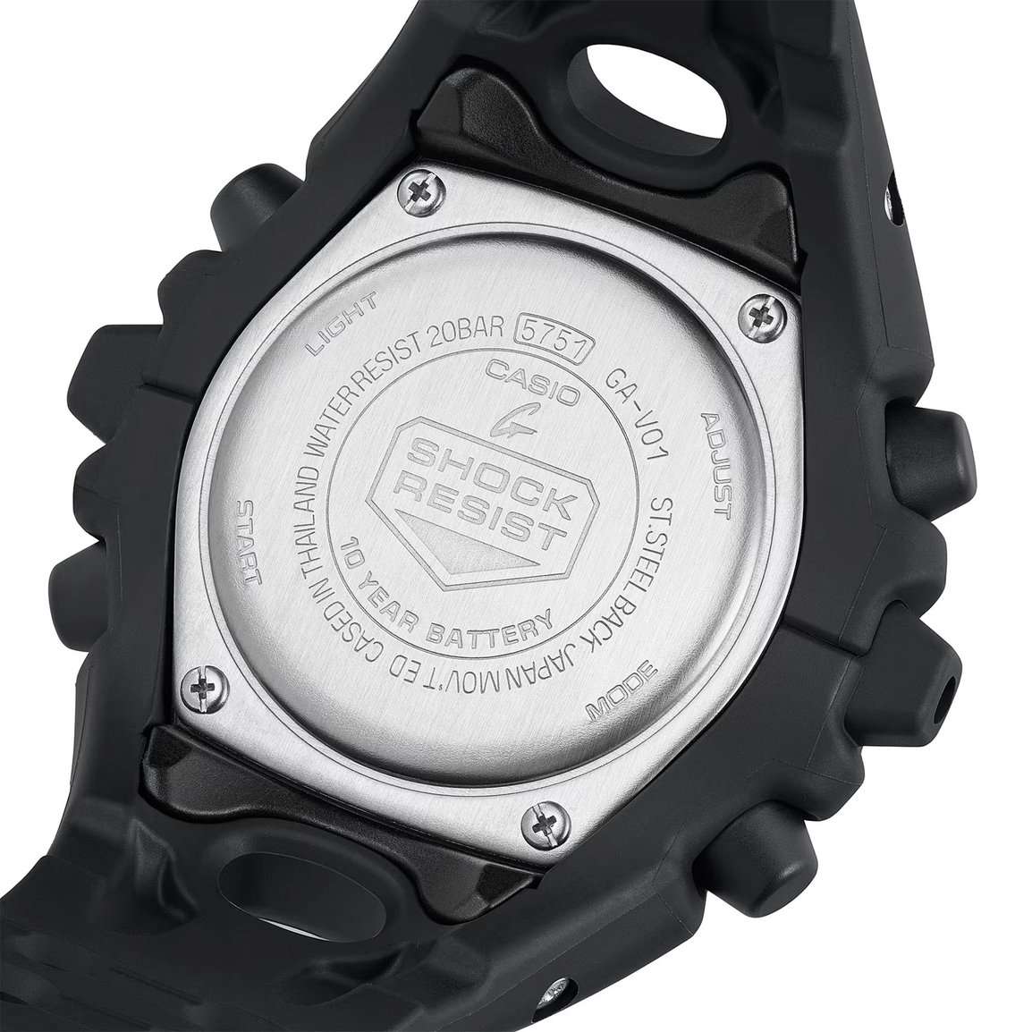 Мужские наручные часы Casio G-Shock GA-V01-1A — это яркое сочетание футуристического дизайна и передовых технологий. Модель выполнена в ударопрочном корпусеУдаропрочный корпусМеханизм заключён в корпус, выполненный из современных материалов, устойчивых к ударам, механическим повреждениям и падению с высоты: инновационный пластик, карбон, нержавеющая сталь, титан. из пластика и оснащена аналого-цифровым отображением времени, что делает их универсальными как для повседневной жизни, так и для активного образа жизни. Часы работают на кварцевом механизме, обеспечивающем точность хода и минимальное обслуживание. Батарейка рассчитана на 10 лет использования, что делает модель особенно экономичной и удобной в эксплуатации. Часы обладают водонепроницаемостью до WR200, позволяют плавать, нырять и заниматься другими водными видами спорта без опасений за сохранность механизма. Циферблат дополнен функцией мирового времени, окошком даты, а также возможностью переключения между 12-ти и 24-х часовым форматом времени. Присутствуют функции хронографа , секундомера с точностью 1/100 секунды, таймераТаймерОтсчитывает секунды в обратном направлении в заданном интервале времени. обратного отсчёта на 24 часа, пяти ежедневных будильниковБудильникБуди́льник — часы, в заданный момент времени подающие звуковой, световой и/или в редких случаях другой сигнал. и почасового сигнала. Также реализована функция временного перемещения стрелок, чтобы обеспечить беспрепятственный обзор цифровых показаний. Циферблат защищен прочным минеральным стекломМинеральное стеклоМинеральное стекло представляет собой искусственно выращенный минерал кварца. Такое стекло отличается особой устойчивостью к повреждениям и царапинам. Уступает по некоторым качествам сапфировому стеклу., а ремешок изготовлен из высококачественного полимерного материала, обеспечивающего комфорт при ношении.Светодиодная подсветкаСветодиодная подсветкаСветодиодная или LED-подсветка обеспечивает появление яркого холодного свечения за счёт LED-элементов - маленьких лампочек. Они потребляют минимальное количество энергии, чаще всего можно встретить 1 светодиод, в нижней части циферблата. освещает весь циферблат, после отпускания кнопки свечение продолжается еще некоторое время. Эта модель — настоящий прорыв в дизайне линейки G-Shock: футуристический внешний вид, вдохновлённый научной фантастикой, и богатый набор функций делают их не просто аксессуаром, а верным спутником в любом деле. Это идеальный выбор для тех, кто ценит стиль, надёжность и инновационные технологии.