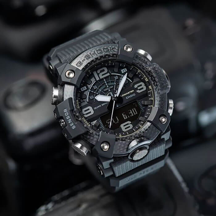 Аксессуар Master of G Black Out отражает сочетание брутального характера и полезного функционала. Карбоновый противоударный корпусУдаропрочный корпусМеханизм заключён в корпус, выполненный из современных материалов, устойчивых к ударам, механическим повреждениям и падению с высоты: инновационный пластик, карбон, нержавеющая сталь, титан. реализует технологию Carbon Core GuardCarbon Core Guard Новейшая структура корпуса, разработанная Casio. Полиуретановая пластина дополнительно усилена карбоновыми вставками, что придаёт специальную защиту от механических повреждений. Карбон отличается лёгкостью и прочностью.. Дополнительный слой прозрачного полимера защищает безельБезельВнешний ободок, закрепляющий стекло. В спортивных часах так называется поворотное кольцо с делениями на циферблате, выполняет роль таймера – замеряет отрезки времени на шкале. Неподвижный безель – элемент декора. Однонаправленно вращающийся безель на дайверских часах позволяет фиксировать моменты погружения и выныривания на поверхность.. Батарейка для питания японского кварцевого механизма рассчитана на 2 года службы. Водостойкость 20 бар. Минеральное стекло. Грязеустойчивость. Светодиодная подсветкаСветодиодная подсветкаСветодиодная или LED-подсветка обеспечивает появление яркого холодного свечения за счёт LED-элементов - маленьких лампочек. Они потребляют минимальное количество энергии, чаще всего можно встретить 1 светодиод, в нижней части циферблата. циферблата, дисплея. Светонакопительное покрытие NeobriteПодсветка NeobriteИспользование светонакопительных составов на основе сульфида цинка или алюмината стронция, яркий свет можно наблюдать на протяжении 6-10 часов после «зарядки» часов около источника света. для стрелок. Высокочувствительный датчик Quad Sensor: термометр -10°C /+60°C, барометр, альтиметр, компас. Синхронизация со смартфоном BluetoothBluetoothСовременная технология, позволяющая синхронизировать часы с телефоном и переносить данные. Часы с Bluetooth расширяют возможности вашего смартфона и делают его использование ещё более удобным.. Поиск телефона. Отображение времени восхода/заката солнца, шагомер, UTCUTCВсемирное кординационное время, не имеющее привязки к географическому положению Гринвича, основывается на атомном отсчёте времени. Регулировка времени осуществляется более точно, чем устаревшее GMT.