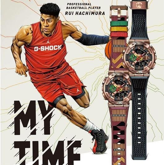 Выпущенные ограниченной серией часы Casio G-Shock GM-110RH-1AER вдохновлены одним из самых успешных японских баскетболистов в NBA, игроку «Вашингтон Уизардс» — Руи Хатимуре. Красные, желтые и зеленые элементы циферблата символизируют флаг Бенина, родины баскетболиста. В комплекте поставки часов имеется ремешок, украшенный африканскими узорами, а на задней же крышке часов расположился фирменный логотип Руи Хатимуры.
