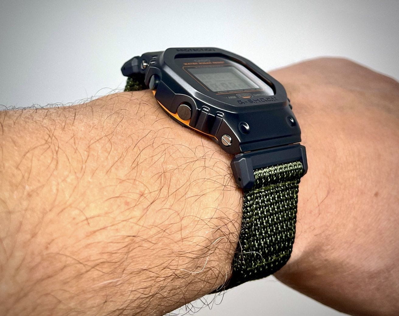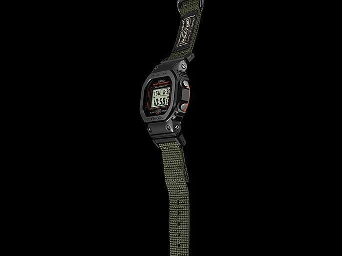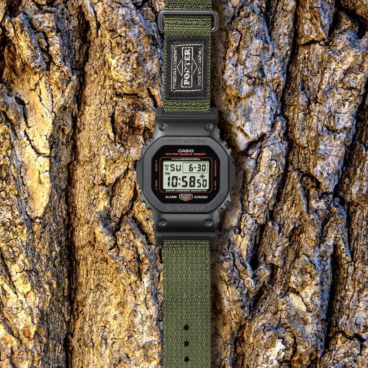 Японские мужские часы лимитированной серии Casio G-Shock GM-5600EY-1DR. Часы созданы в коллаборации с японским брендом PORTER, производителем сумок и одежды премиум-класса. В комплект поставки часов входит три ремешка: зеленый тканевый, черный полимерный и прочный ремешок-манжета от PORTER. Класс водозащиты: 200 метров, позволит плавать, нырять и заниматься другими водными видами спорта. Корпус часов изготовлен из стали, с PVD покрытием черного цвета.
