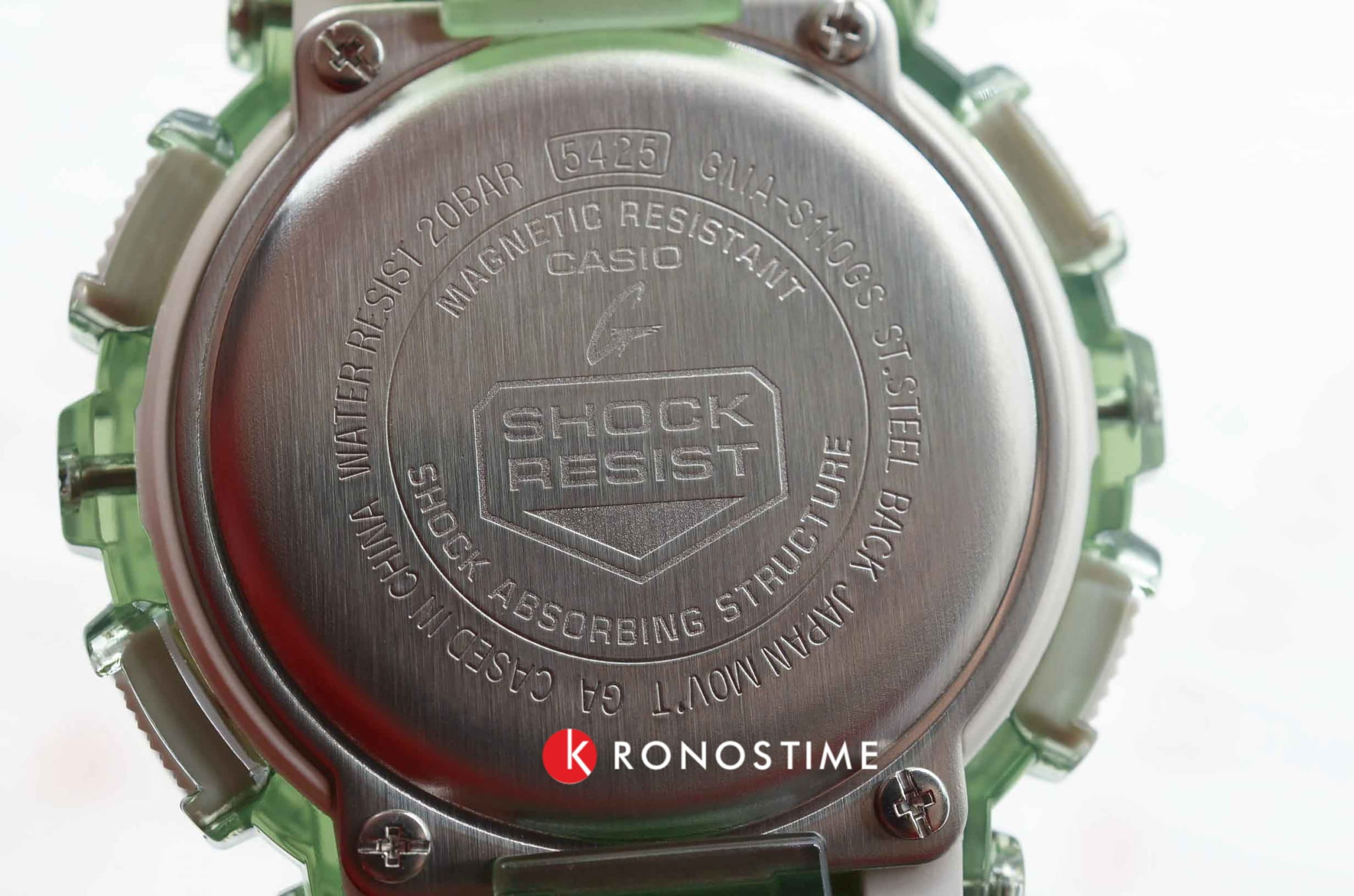 Японские ударопрочныеУдаропрочный корпусМеханизм заключён в корпус, выполненный из современных материалов, устойчивых к ударам, механическим повреждениям и падению с высоты: инновационный пластик, карбон, нержавеющая сталь, титан. женские часы с хронографом Casio G-Shock GMA-S110GS-3A, кварцевый механизм с высокой точностью. Класс водозащиты: 200 метров, позволит плавать, нырять и заниматься другими водными видами спорта. Корпус часов изготовлен из пластика. Прозрачный ремешок и корпус в сочетании с двухцветными элементами циферблата создают сбалансированный, плавный, современный стиль. Циферблат с светодиодной подсветкойСветодиодная подсветкаСветодиодная или LED-подсветка обеспечивает появление яркого холодного свечения за счёт LED-элементов - маленьких лампочек. Они потребляют минимальное количество энергии, чаще всего можно встретить 1 светодиод, в нижней части циферблата., функция автоподсветки освещает циферблат при повороте часов к лицу, функция Afterglow (для подсветки не нужно удерживать кнопку, выбор времени послесвечения). Цвет подсветки: оранжевый. Ударопрочный корпусУдаропрочный корпусМеханизм заключён в корпус, выполненный из современных материалов, устойчивых к ударам, механическим повреждениям и падению с высоты: инновационный пластик, карбон, нержавеющая сталь, титан. защищает механизм от ударов и вибрации. Защищены от магнитных полей. СекундомерСекундомерСекундоме́р — прибор, способный измерять интервалы времени с точностью до долей секунды. с точностью показаний 1/1000с и временем измерения 100ч. Сплит-хронографСплит-хронографИспользуется для измерения продолжительности нескольких временных отрезков, начинающихся одновременно, а заканчивающихся в разное время.. ТаймерТаймерОтсчитывает секунды в обратном направлении в заданном интервале времени. обратного отсчета от 1мин до 24ч с автоповтором. Мировое времяМировое время Полезное часовое усложнение, отображающее время в основных городах и известных областях по всему миру, оно связано с часовыми поясами, удобно для путешественников и бизнесменов. : 29 часовых поясов (48 городов + координированное универсальное время), включение/выключение перехода на летнее время, переключение городов домашнего/мирового времени. 12-ти и 24-х часовой формат времени.