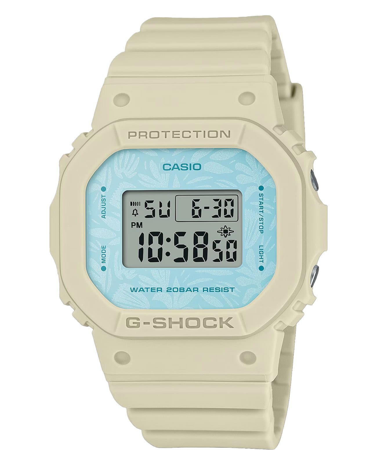 Японские женские часы Casio G-Shock GMD-S5600NC-9ER из коллекции G-Shock. Окунитесь в целебный комфорт природы с настоящим G-SHOCK в цветах, вдохновленных флорой, и с ботаническим дизайном. Основные компоненты изготовлены из биопластика, полученных из возобновляемых органических ресурсов. Ожидается, что этот материал поможет снизить выбросы CO2 и иным образом снизить воздействие на окружающую среду. Минеральное стеклоМинеральное стеклоМинеральное стекло представляет собой искусственно выращенный минерал кварца. Такое стекло отличается особой устойчивостью к повреждениям и царапинам. Уступает по некоторым качествам сапфировому стеклу. устойчивое к появлению царапин, обладающее высокой прозрачностью. Ударопрочный корпусУдаропрочный корпусМеханизм заключён в корпус, выполненный из современных материалов, устойчивых к ударам, механическим повреждениям и падению с высоты: инновационный пластик, карбон, нержавеющая сталь, титан. защищает механизм от ударов и вибрации. Светодиодная подсветкаСветодиодная подсветкаСветодиодная или LED-подсветка обеспечивает появление яркого холодного свечения за счёт LED-элементов - маленьких лампочек. Они потребляют минимальное количество энергии, чаще всего можно встретить 1 светодиод, в нижней части циферблата., настраиваемое послесвечение 1,5 или 3сек. СекундомерСекундомерСекундоме́р — прибор, способный измерять интервалы времени с точностью до долей секунды. с точностью измерения 1/100 секунды и измерением до 23 часов 59 минут 59,99 cек. ТаймерТаймерОтсчитывает секунды в обратном направлении в заданном интервале времени. обратного отсчета (диапазон времени 24 часа), вечный календарьВечный календарьКлассическое часовое усложнение, представляющее собой календарь, рассчитанный на несколько лет вперёд (стандартно – до 2099 года). Определяет текущую дату, день недели, месяц., 12/24 отображение времени. 5 будильниковБудильникБуди́льник — часы, в заданный момент времени подающие звуковой, световой и/или в редких случаях другой сигнал., ежечасный сигнал. Класс водозащиты: 200 метров, позволит плавать, нырять и заниматься другими водными видами спорта. Ремешок из полимерного материала на стандартной застежке.