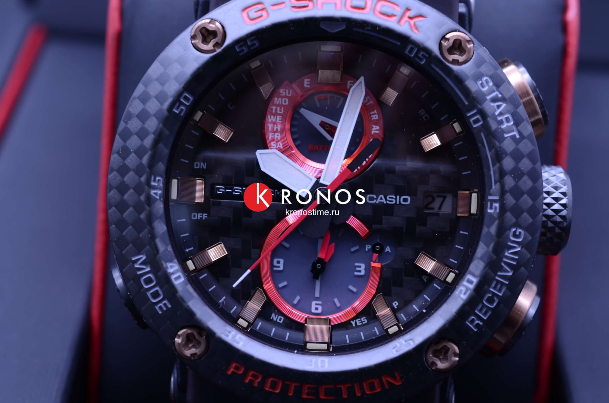 Внушительный аксессуар стильно смотрится на широком запястье, гармонично смотрятся крупные детали в красном и бронзовом цвете. Задняя крышка здесь отсутствует, ударопрочный корпусУдаропрочный корпусМеханизм заключён в корпус, выполненный из современных материалов, устойчивых к ударам, механическим повреждениям и падению с высоты: инновационный пластик, карбон, нержавеющая сталь, титан. сделан из монолитного углеродного монокока, вдохновлённого конструкцией ранних самолётов. Он состоит из 52 карбоновых слоёв, уникальная текстура просматривается на боковых частях безеляБезельВнешний ободок, закрепляющий стекло. В спортивных часах так называется поворотное кольцо с делениями на циферблате, выполняет роль таймера – замеряет отрезки времени на шкале. Неподвижный безель – элемент декора. Однонаправленно вращающийся безель на дайверских часах позволяет фиксировать моменты погружения и выныривания на поверхность. – с успехом реализована технология Carbon Core GuardCarbon Core Guard Новейшая структура корпуса, разработанная Casio. Полиуретановая пластина дополнительно усилена карбоновыми вставками, что придаёт специальную защиту от механических повреждений. Карбон отличается лёгкостью и прочностью.. Полимерный ремешок тоже имеет усиление карбоновыми волокнами. Наручные часы обладают полезным функционалом: BluetoothBluetoothСовременная технология, позволяющая синхронизировать часы с телефоном и переносить данные. Часы с Bluetooth расширяют возможности вашего смартфона и делают его использование ещё более удобным., будильник, мировое времяМировое время Полезное часовое усложнение, отображающее время в основных городах и известных областях по всему миру, оно связано с часовыми поясами, удобно для путешественников и бизнесменов. , таймер, приём радиосигнала, питание от солнечной батареи . Сапфировое стекло с антибликовой обработкой. Яркая люминесцентная подсветкаЛюминесцентное покрытиеПозволяет считывать показания времени в темноте. Производители наносят на стрелки, часовые индексы, безель или поверхность циферблата светонакопительный состав, дающий холодное свечение.. Габариты: 50,1 x 46,4 x 16,9 мм.