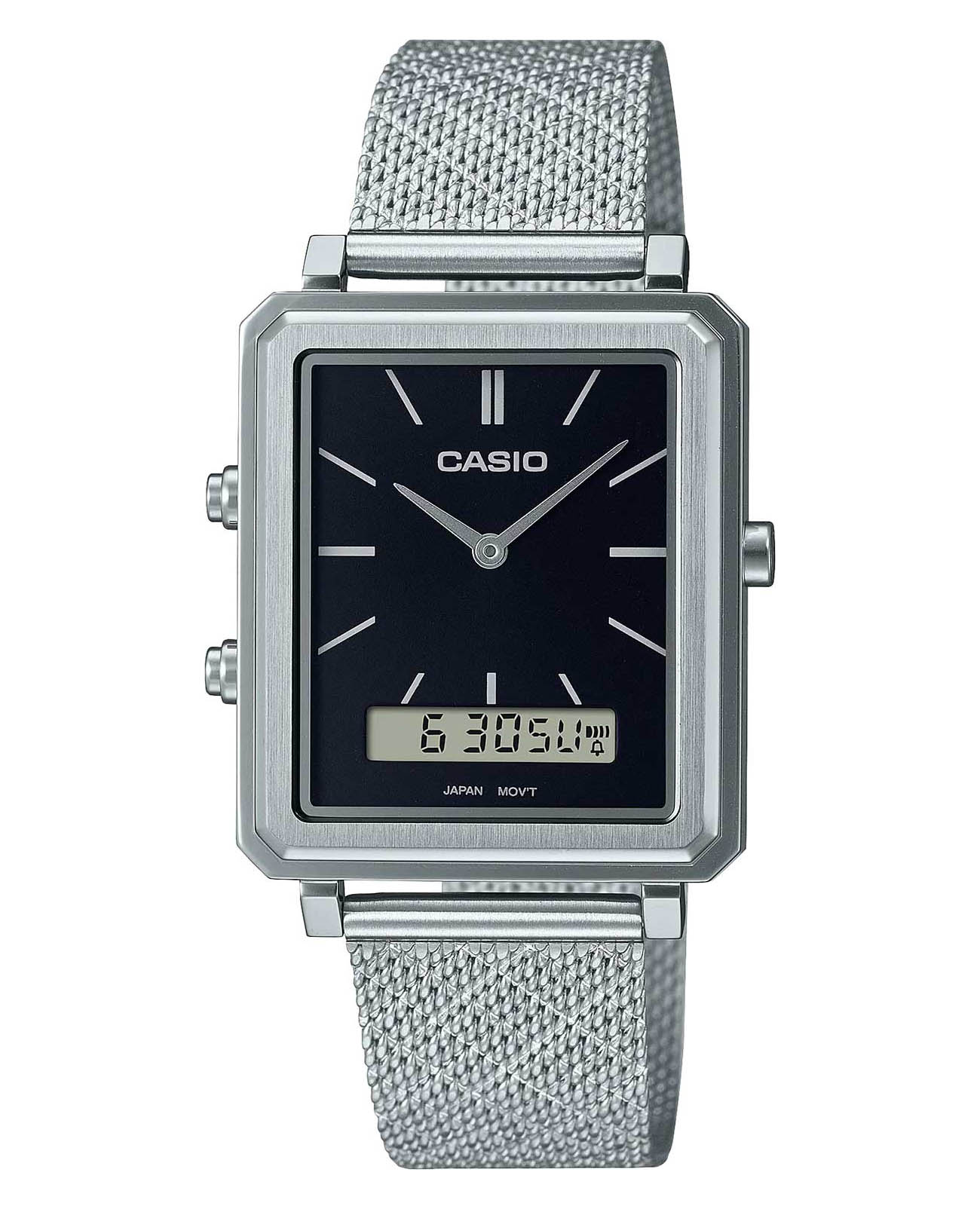 Японские мужские наручные аналогово-цифровые часы-хронографХронографФункция позволяет измерять отрезки времени с особой точностью: часы, минуты, секунды. Верным признаком хронографа является наличие на циферблате 3 дополнительных окошек-счётчиков. Casio Collection MTP-B205M-1E, кварцевый механизм с высокой точностью. Класс водозащиты: 30 метров, позволит защитить корпус от случайных брызг или капель дождя. 12 и 24-часовой формат времени. Секундомер с точностью показаний 1/100с и временем измерения 60мин. Второй часовой пояс. Циферблат с метками в виде штрихов. Батарея рассчитана на 3 года. Браслет миланского плетения с регулируемой застежкой.