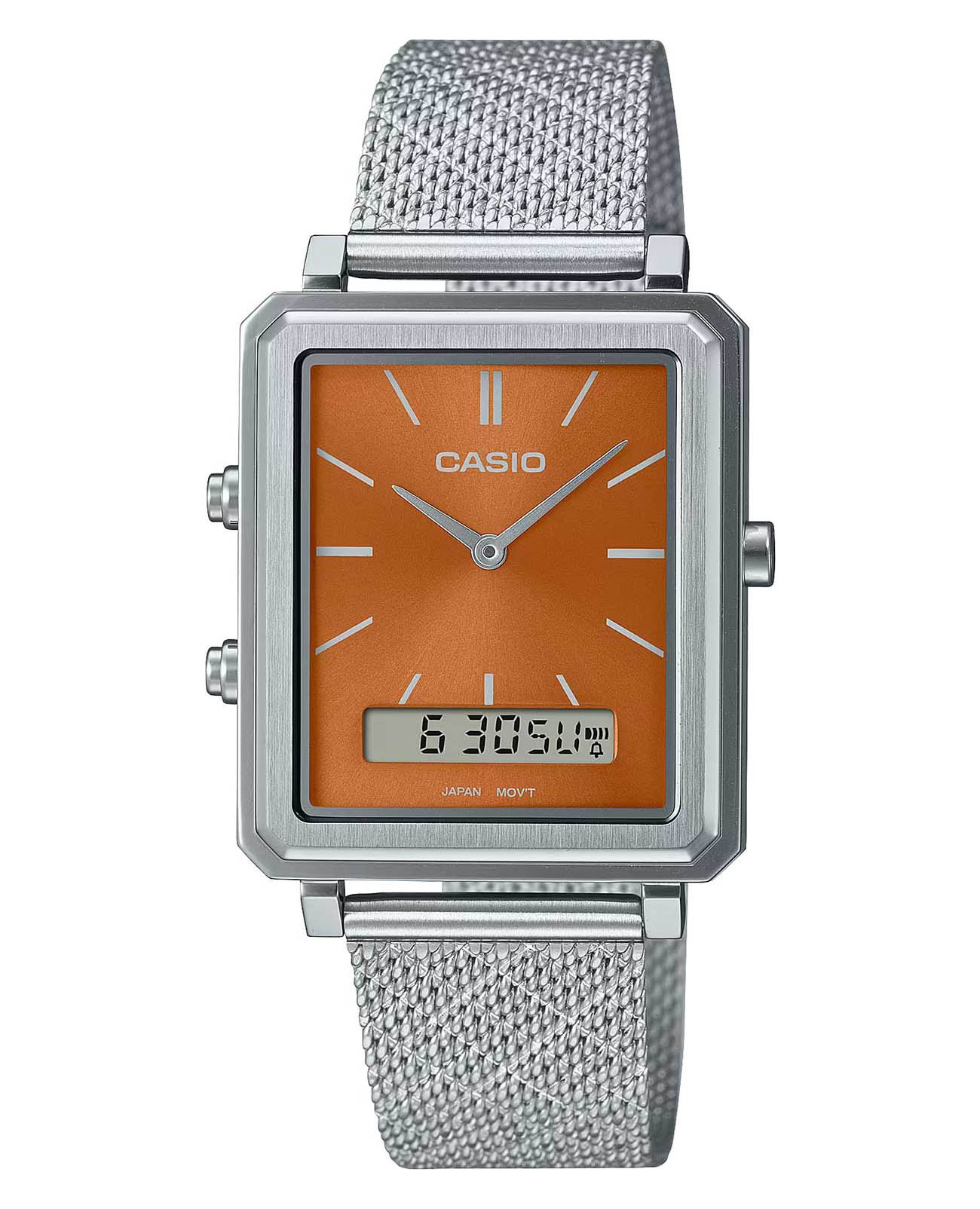Японские мужские часы-хронографХронографФункция позволяет измерять отрезки времени с особой точностью: часы, минуты, секунды. Верным признаком хронографа является наличие на циферблате 3 дополнительных окошек-счётчиков. с минеральным стекломМинеральное стеклоМинеральное стекло представляет собой искусственно выращенный минерал кварца. Такое стекло отличается особой устойчивостью к повреждениям и царапинам. Уступает по некоторым качествам сапфировому стеклу. Casio Collection MTP-B205M-5E, кварцевый механизм с высокой точностью. Корпус часов изготовлен из стали. 2 и 24-часовой формат времени. СекундомерСекундомерСекундоме́р — прибор, способный измерять интервалы времени с точностью до долей секунды. с точностью показаний 1/100с и временем измерения 60мин. Второй часовой пояс. Циферблат с метками в виде штрихов выполнен по технологии Sunray (солнечные лучи). Батарея рассчитана на 3 года. Класс водозащиты: 50 метров, позволит защитить корпус от случайных брызг или капель дождя. Стальной браслет миланского плетения на раскладном замкеРаскладной замокДанный вариант застежки используется только на часах с металлическим браслетом. Отличительная особенность такого крепления в том, что длина браслета становится универсальной и вы можете самостоятельно отрегулировать нужный вам размер – застежка просто двигается по браслету часов..