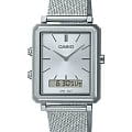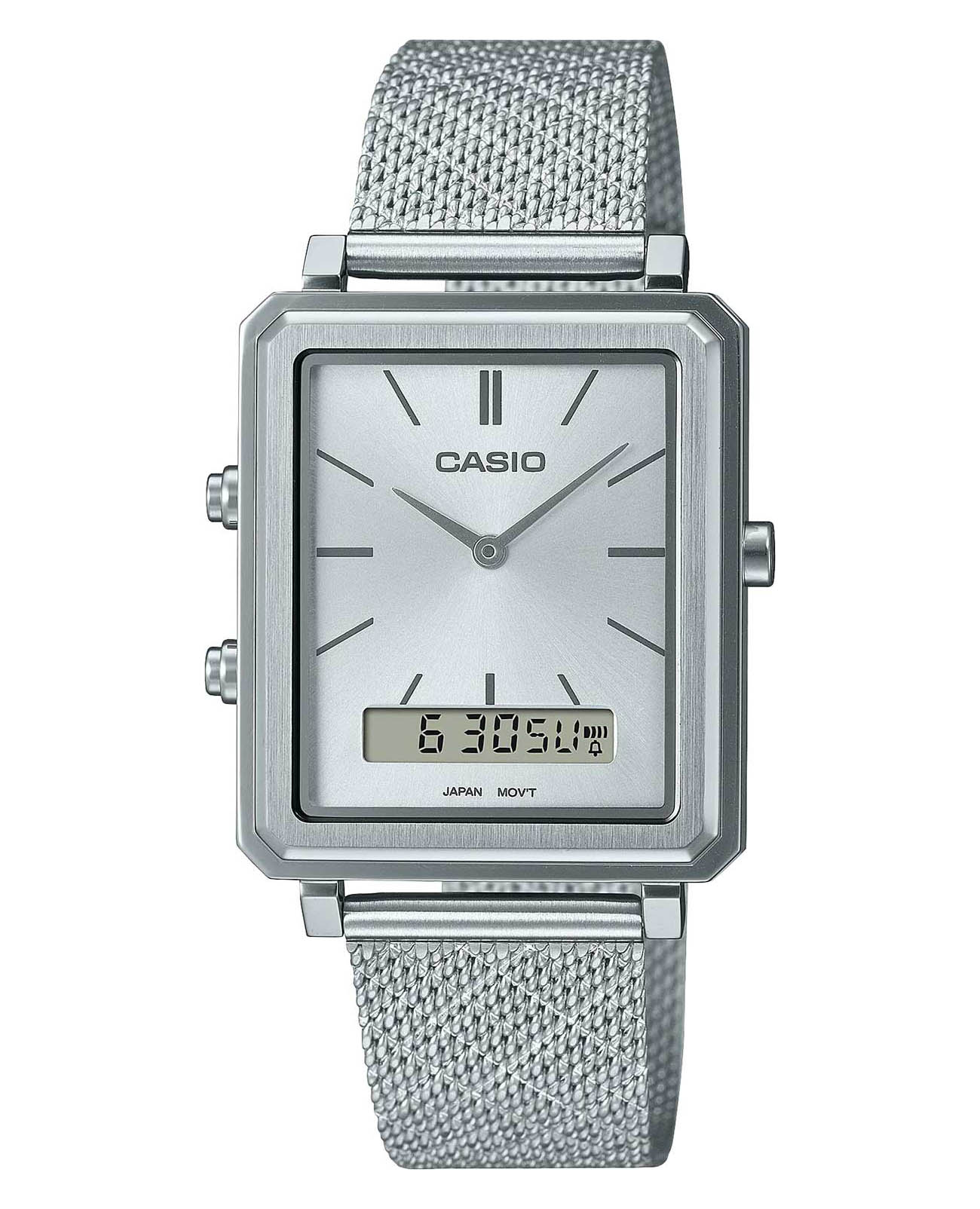 Японские мужские наручные аналогово-цифровые часы-хронографХронографФункция позволяет измерять отрезки времени с особой точностью: часы, минуты, секунды. Верным признаком хронографа является наличие на циферблате 3 дополнительных окошек-счётчиков. Casio Collection MTP-B205M-7E, кварцевый механизм с высокой точностью. Класс водозащиты: 30 метров, позволит защитить корпус от случайных брызг или капель дождя. 12 и 24-часовой формат времени. Секундомер с точностью показаний 1/100с и временем измерения 60мин. Второй часовой пояс. Циферблат с метками в виде штрихов. Батарея рассчитана на 3 года. Браслет миланского плетения с регулируемой застежкой.