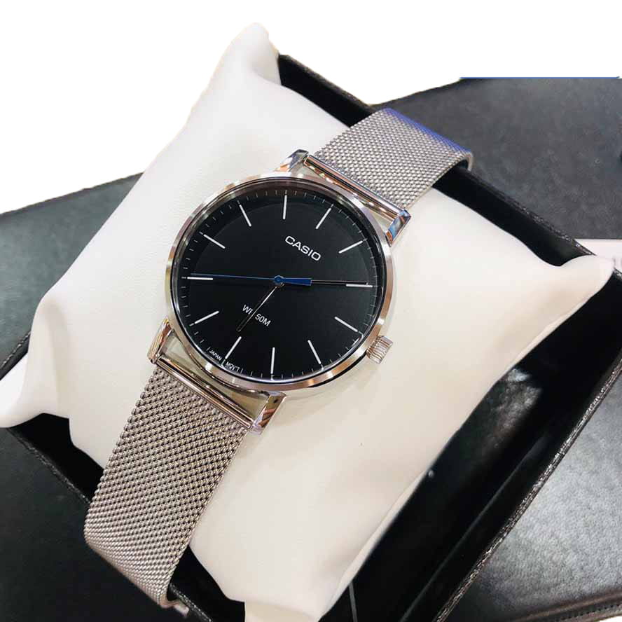 Японские мужские часы с минеральным стекломМинеральное стеклоМинеральное стекло представляет собой искусственно выращенный минерал кварца. Такое стекло отличается особой устойчивостью к повреждениям и царапинам. Уступает по некоторым качествам сапфировому стеклу. Casio Collection MTP-E171M-1E, кварцевый механизм с высокой точностью. Класс водозащиты: 50 метров, позволит защитить корпус от случайных брызг или капель дождя. Корпус часов изготовлен из стали. Стальной браслет на раскладной застёжкеРаскладная застёжкаТакой тип застёжки используется только на браслетах из металла. Она никогда не раскрывается полностью, происходит разделение на 2 и более частей. Раскладывающая застёжка снизит вероятность потери часов к минимуму..