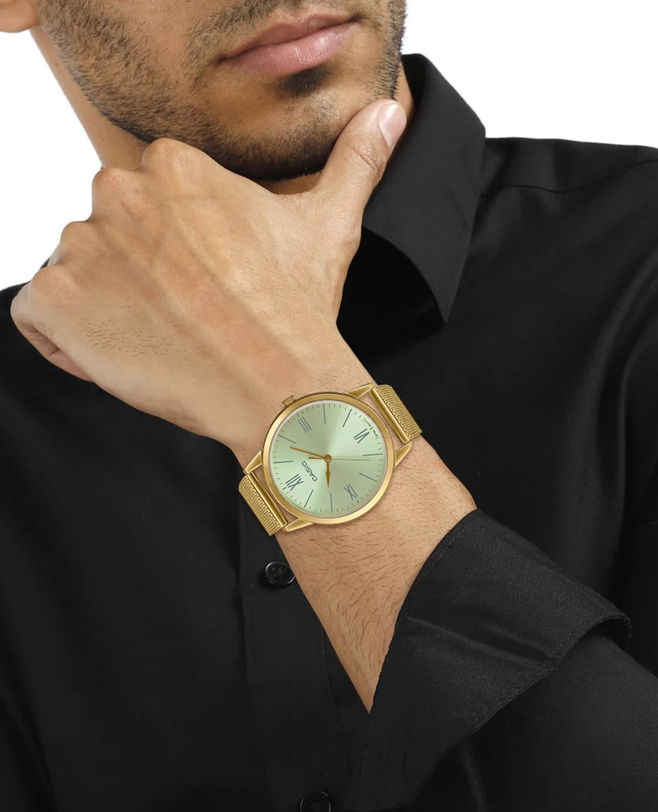 Японские мужские часы с минеральным стекломМинеральное стеклоМинеральное стекло представляет собой искусственно выращенный минерал кварца. Такое стекло отличается особой устойчивостью к повреждениям и царапинам. Уступает по некоторым качествам сапфировому стеклу. Casio Collection MTP-E600MG-9B, кварцевый механизм с высокой точностью. Корпус часов изготовлен из стали с IP-покрытиемIP-покрытиеМетод ионного напыления. Демонстрирует повышенную устойчивость к истиранию, окислению и химическим веществам. Под воздействием высокого давления и температуры около 1500°C молекулы металла надёжно соединяются с частицами корпуса часов.. Циферблат выполнен по технологии Sunray (солнечные лучи). Метки в виде штрихов и римских цифр. Батарея рассчитана на 3 года. Класс водозащиты: 50 метров, позволит защитить корпус от случайных брызг или капель дождя. Стальной браслет миланского плетения с IP-покрытиемIP-покрытиеМетод ионного напыления. Демонстрирует повышенную устойчивость к истиранию, окислению и химическим веществам. Под воздействием высокого давления и температуры около 1500°C молекулы металла надёжно соединяются с частицами корпуса часов. на раскладном замкеРаскладной замокДанный вариант застежки используется только на часах с металлическим браслетом. Отличительная особенность такого крепления в том, что длина браслета становится универсальной и вы можете самостоятельно отрегулировать нужный вам размер – застежка просто двигается по браслету часов..