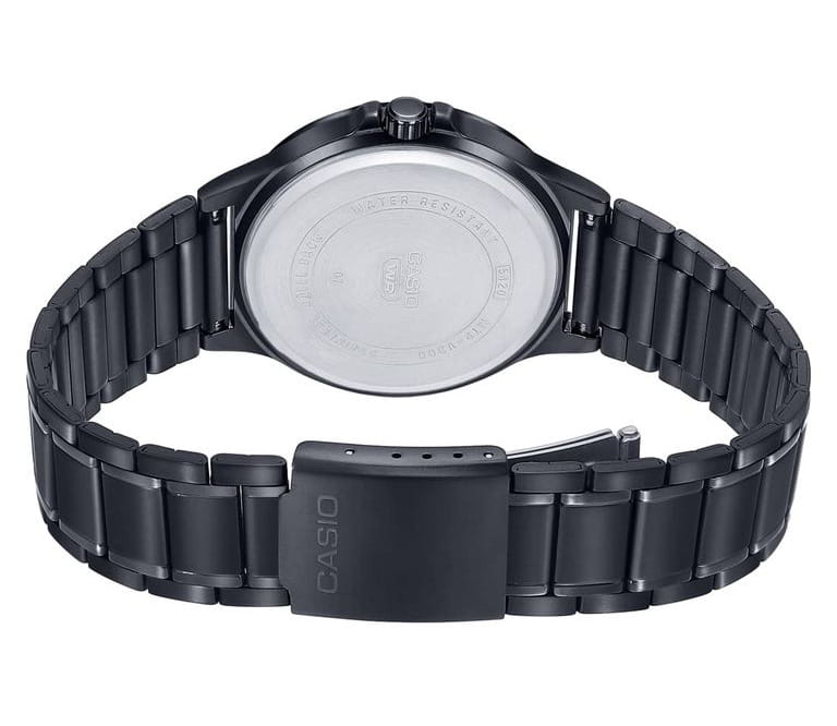 Японские мужские часы с минеральным стекломМинеральное стеклоМинеральное стекло представляет собой искусственно выращенный минерал кварца. Такое стекло отличается особой устойчивостью к повреждениям и царапинам. Уступает по некоторым качествам сапфировому стеклу. Casio CollectionMTP-V300B-1A, кварцевый механизм с высокой точностью. Корпус и браслет часов изготовлены из стали IP-покрытиемIP-покрытиеМетод ионного напыления. Демонстрирует повышенную устойчивость к истиранию, окислению и химическим веществам. Под воздействием высокого давления и температуры около 1500°C молекулы металла надёжно соединяются с частицами корпуса часов.. Люминесцентная подсветкаЛюминесцентное покрытиеПозволяет считывать показания времени в темноте. Производители наносят на стрелки, часовые индексы, безель или поверхность циферблата светонакопительный состав, дающий холодное свечение.. Браслет с раскладной застёжкойРаскладная застёжкаТакой тип застёжки используется только на браслетах из металла. Она никогда не раскрывается полностью, происходит разделение на 2 и более частей. Раскладывающая застёжка снизит вероятность потери часов к минимуму..