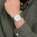 Аксессуар в классическом серебристом исполнении с кожанным ремешком никогда не утратит актуальности, он будет прекрасным дополнением к классическому костюму, спортивной футболке, модных джинсах. Компактный циферблат выполнен в минималистичном стиле, с метками в виде штрихов выполнен по технологии Sunray (солнечные лучи). Контрастные стрелки и метки хорошо видны на его фоне. Браслет наручных часов сделан из натуральной кожи. Высокоточный кварцевый механизм.