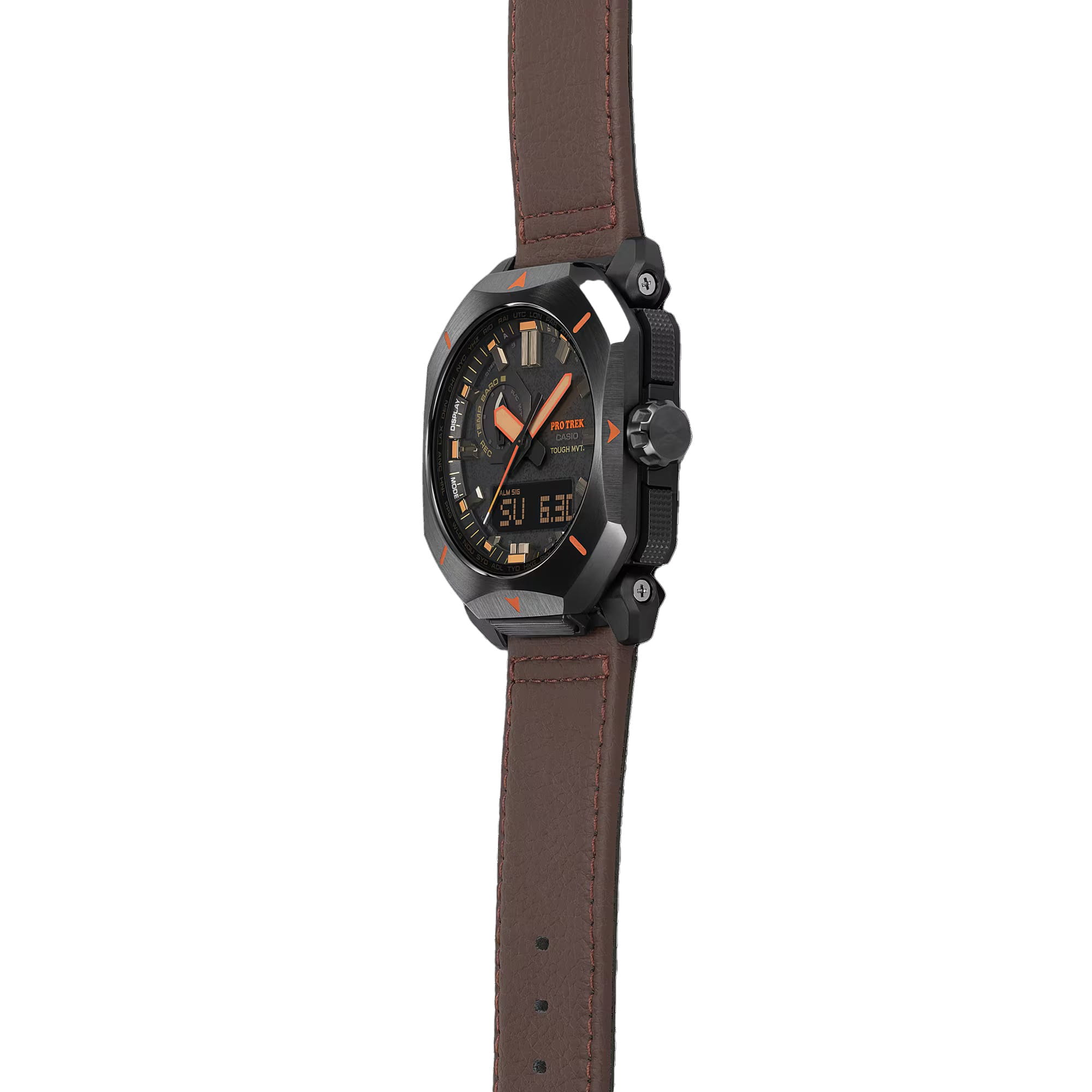 Часы премиум-класса для искателей приключений. Питание от солнечной энергии Tough SolarTough SolarТехнология основана на подзарядке аккумулятора от источника солнечного света, специальная панель улавливает солнечные лучи и преобразует их в энергию для работы часов. Достаточно пары минут нахождения на солнце для функционирования часов в течении суток. - солнечные батарейки большой мощности, индикатор заряда батареи. Функция автоматического сохранения энергии. Время работы аккумулятора без подзарядки - 6 месяцев, при включенной функции сохранения энергии - 25 месяцев. Модуль часов рассчитан на работу при низких температурах до -10°С/14°F. Двойная подсветка: одно нажатие кнопки обеспечит подсветку не только цифрового дисплея, но и аналогового циферблата. Благодаря наличию функции задержки, после отпускания кнопки освещение горит еще несколько секунд. Настраиваемое послесвечение 1,5 или 3сек. Цвет подсветки: белый. Необритовое светонакопительноеПодсветка NeobriteИспользование светонакопительных составов на основе сульфида цинка или алюмината стронция, яркий свет можно наблюдать на протяжении 6-10 часов после «зарядки» часов около источника света. покрытие обеспечивает длительное послесвечение в темноте даже после кратковременного нахождения на свету. 12-ти и 24-х часовой формат времени. СекундомерСекундомерСекундоме́р — прибор, способный измерять интервалы времени с точностью до долей секунды. с точностью показаний 1/100с и временем измерения 24ч. Сплит-хронографСплит-хронографИспользуется для измерения продолжительности нескольких временных отрезков, начинающихся одновременно, а заканчивающихся в разное время.. ТаймерТаймерОтсчитывает секунды в обратном направлении в заданном интервале времени. обратного отсчета от 1мин до 1ч. Мировое время Мировое время Полезное часовое усложнение, отображающее время в основных городах и известных областях по всему миру, оно связано с часовыми поясами, удобно для путешественников и бизнесменов. – 29 городов (29 часовых поясов), всемирное координированное время (UTCUTCВсемирное кординационное время, не имеющее привязки к географическому положению Гринвича, основывается на атомном отсчёте времени. Регулировка времени осуществляется более точно, чем устаревшее GMT.