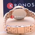 Аксессуар акцентирует внимание на календарном окошке, оформленном стразами Swarovski, стильно смотрятся римские цифры. Японский кварцевый механизм работает от батарейки, срок её службы – 3 года. Корпус и браслет выполнены из антикоррозионной стали 316L с IP-финишемIP-покрытиеМетод ионного напыления. Демонстрирует повышенную устойчивость к истиранию, окислению и химическим веществам. Под воздействием высокого давления и температуры около 1500°C молекулы металла надёжно соединяются с частицами корпуса часов.. Минеральное стекло отличается прочностью и устойчивостью к царапинам.