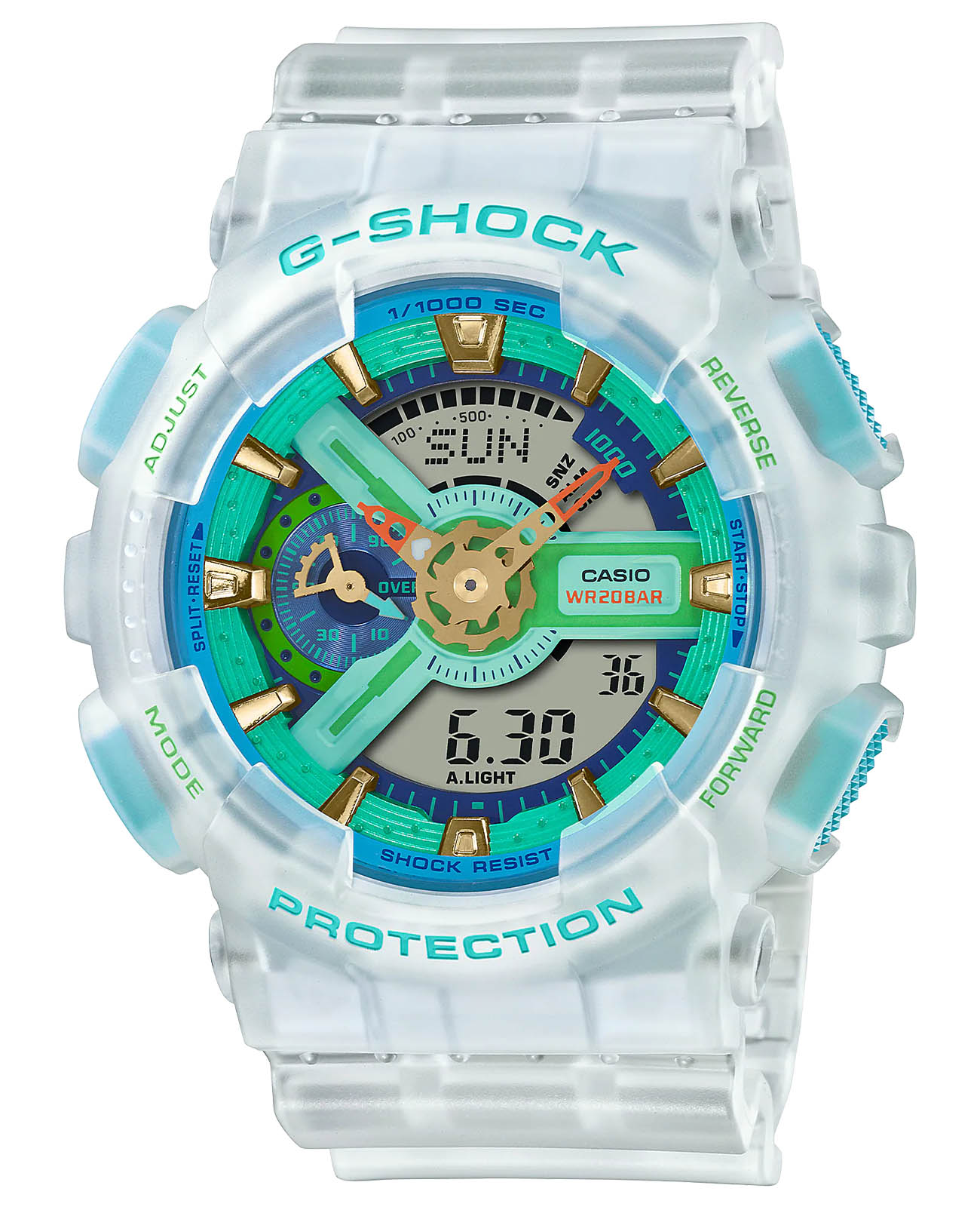 Мужские японские наручные часы Casio G-Shock SLV-21A-7A, электронный механизм с высокой точностью. Класс водозащиты: 200 метров, позволит плавать, нырять и заниматься другими водными видами спорта. Корпус часов изготовлен из пластика, прозрачного цвета.