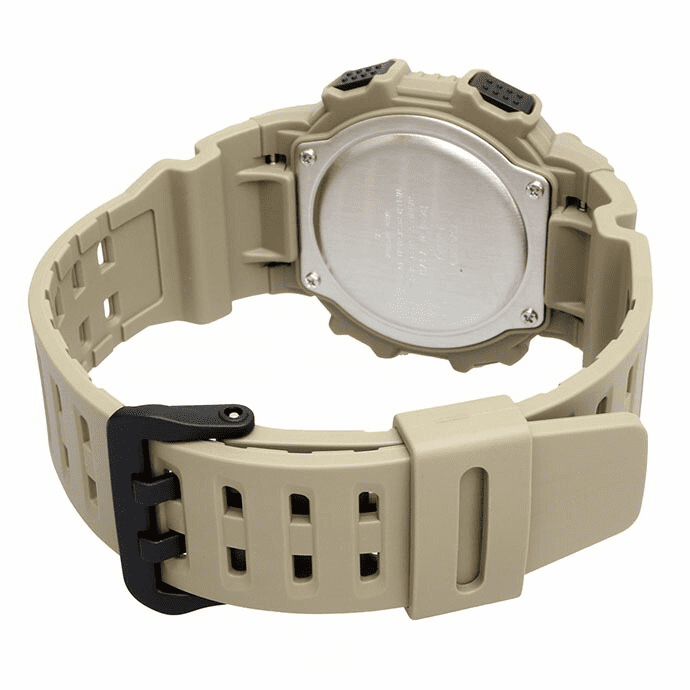 Спортивные мужские часы. Секундомер. Отображение времени в двух часовых поясах. Таймер. Будильник. Мировое время. Подсветка циферблата. Корпус - Пластиковый; Стекло - Пластик; Водозащита - 100 м. (WR 100); Материал ремешка - Пластиковый; Цвет ремешка - Черный; Цвет циферблата - Lcd.