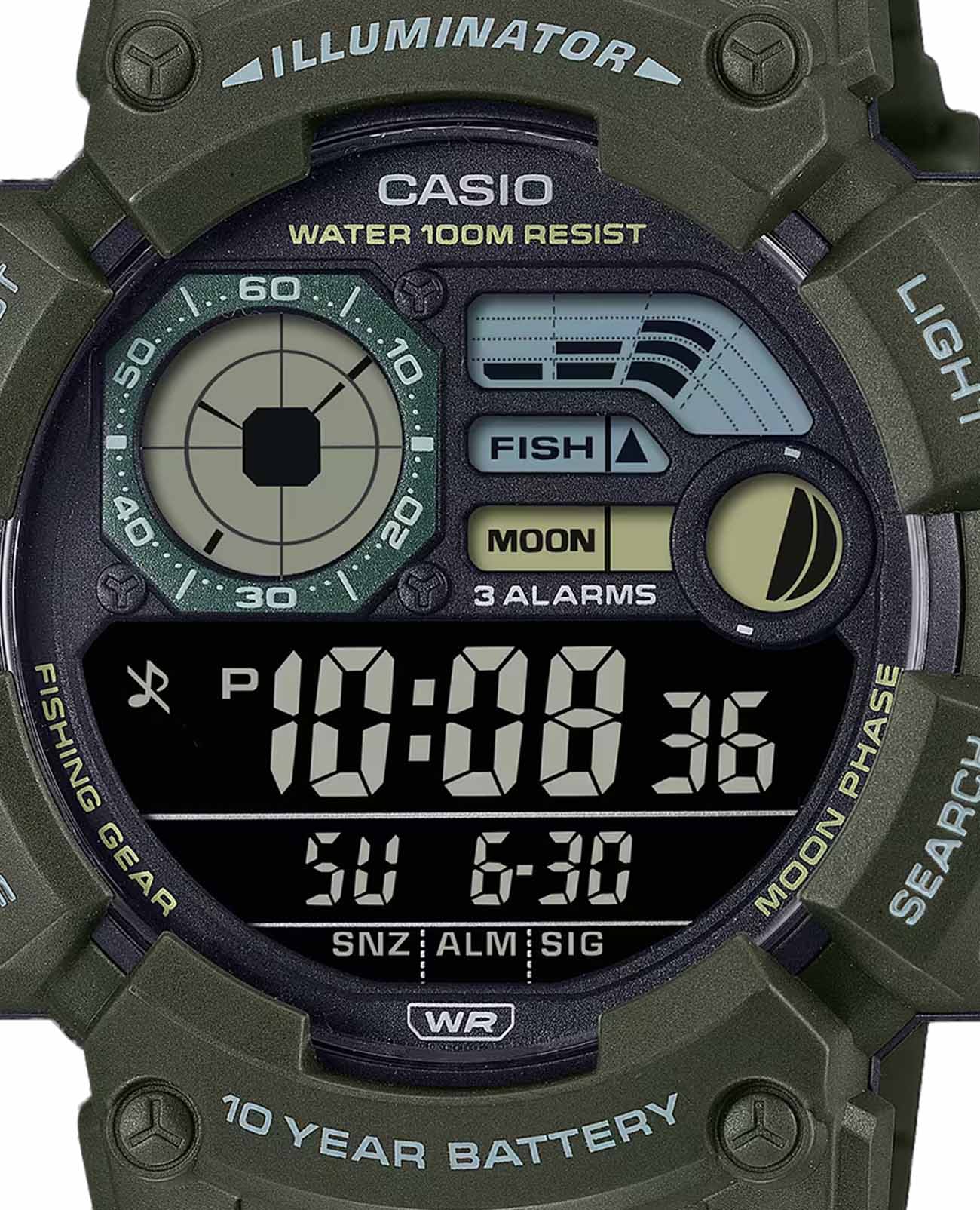 Японские мужские наручные часы Casio WS-1500H-3BV c кварцевым механизмом высокой точности. Функции: Мировое времяМировое время Полезное часовое усложнение, отображающее время в основных городах и известных областях по всему миру, оно связано с часовыми поясами, удобно для путешественников и бизнесменов. , светодиодная подсветкаСветодиодная подсветкаСветодиодная или LED-подсветка обеспечивает появление яркого холодного свечения за счёт LED-элементов - маленьких лампочек. Они потребляют минимальное количество энергии, чаще всего можно встретить 1 светодиод, в нижней части циферблата., секундомерСекундомерСекундоме́р — прибор, способный измерять интервалы времени с точностью до долей секунды., таймерТаймерОтсчитывает секунды в обратном направлении в заданном интервале времени., будильникБудильникБуди́льник — часы, в заданный момент времени подающие звуковой, световой и/или в редких случаях другой сигнал., автоматический календарь, 12/24 отображение времени. Продолжительное время работы аккумулятора - 10 лет. Органическое стекло, корпус и ремешок из полимерного пластика, водонепроницаемость 100 метров, позволит плавать, нырять и заниматься другими водными видами спорта