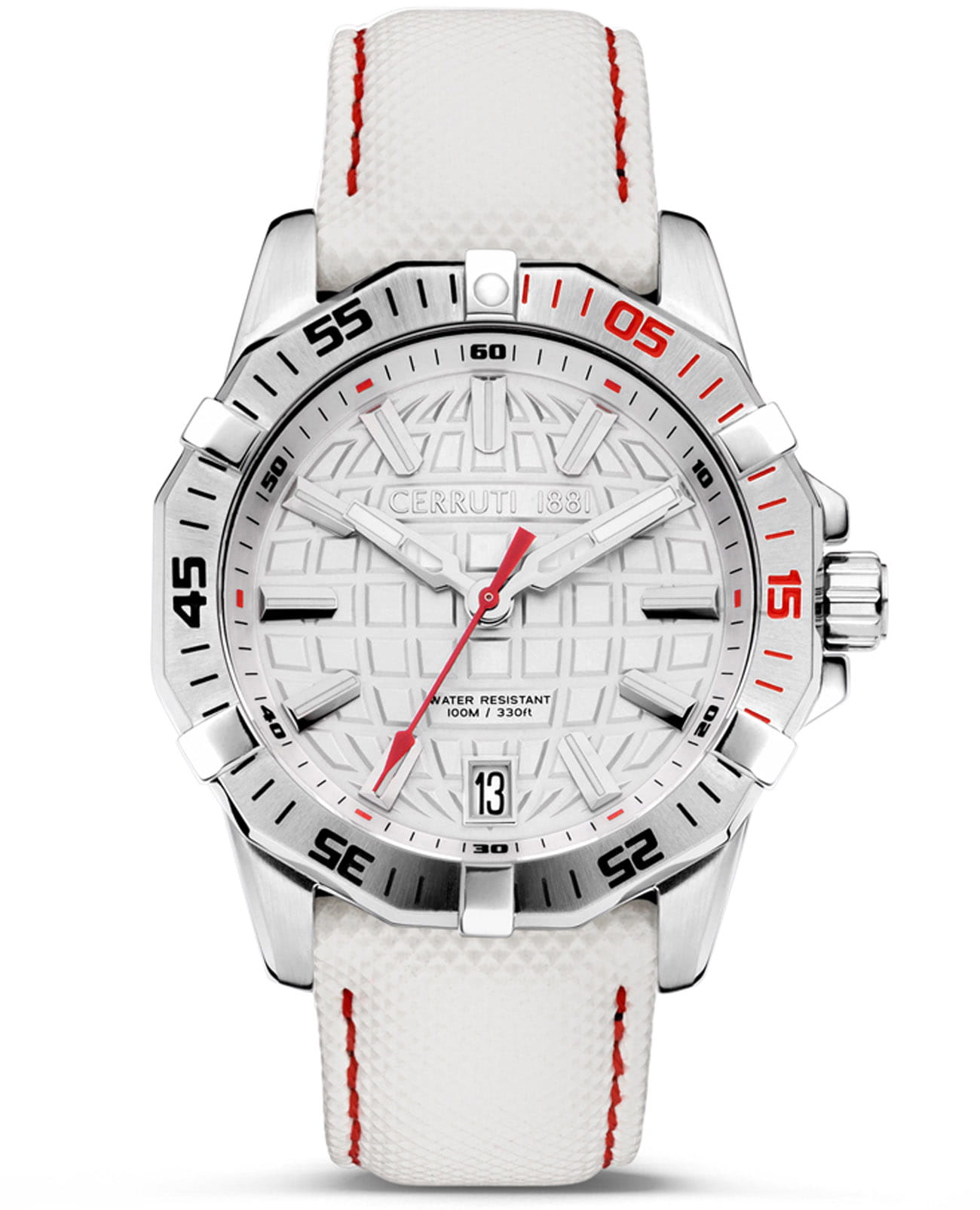 Французские мужские часы Cerruti 1881 Vallelaghi CIWGN0007502, кварцевый механизм с высокой точностью. Минеральное стеклоМинеральное стеклоМинеральное стекло представляет собой искусственно выращенный минерал кварца. Такое стекло отличается особой устойчивостью к повреждениям и царапинам. Уступает по некоторым качествам сапфировому стеклу. устойчивое к мелким механическим повреждениям. Корпус часов изготовлен из нержавеющей стали. Циферблат выполнен с метками в виде штрихов. Окошко даты находится в положении 6 часа. Стрелки и метки с люминесцентным покрытиемЛюминесцентное покрытиеПозволяет считывать показания времени в темноте. Производители наносят на стрелки, часовые индексы, безель или поверхность циферблата светонакопительный состав, дающий холодное свечение.. Класс водозащиты: 100 метров, позволит плавать, нырять и заниматься другими водными видами спорта. Силиконовый ремешок на стандартной застежке.