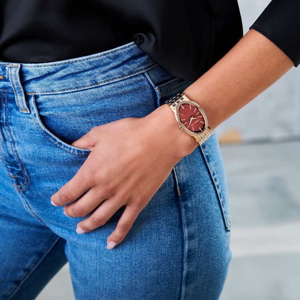 Элегантные наручные часы CERRUTI 1881 NORCIA CIWLG0008803, которые идеально подходят для тех, кто ценит стиль и утонченность. Эти женские часы обладают уникальным овальным корпусом размером 28x46 мм, выполненным из прочной стали в классическом серебристом цвете, что придаёт им современный и элегантный вид. Красный циферблат с индексами и стразами создает изысканный контраст и привлекает внимание. Корпус часов выполнен из высококачественной нержавеющей стали, а безельБезельВнешний ободок, закрепляющий стекло. В спортивных часах так называется поворотное кольцо с делениями на циферблате, выполняет роль таймера – замеряет отрезки времени на шкале. Неподвижный безель – элемент декора. Однонаправленно вращающийся безель на дайверских часах позволяет фиксировать моменты погружения и выныривания на поверхность. этих часов с золотистым IP-покрытиемIP-покрытиеМетод ионного напыления. Демонстрирует повышенную устойчивость к истиранию, окислению и химическим веществам. Под воздействием высокого давления и температуры около 1500°C молекулы металла надёжно соединяются с частицами корпуса часов., что придаёт им прочность и долговечность. Оснащенные надежным кварцевым механизмом, часы гарантируют высокую точность и долговечность. Минеральное стеклоМинеральное стеклоМинеральное стекло представляет собой искусственно выращенный минерал кварца. Такое стекло отличается особой устойчивостью к повреждениям и царапинам. Уступает по некоторым качествам сапфировому стеклу. с сапфировым покрытием защищает их от царапин и повреждений, сохраняя первозданный вид даже при активном использовании. Браслет из нержавеющей стали с частичным IP-покрытиемIP-покрытиеМетод ионного напыления. Демонстрирует повышенную устойчивость к истиранию, окислению и химическим веществам. Под воздействием высокого давления и температуры около 1500°C молекулы металла надёжно соединяются с частицами корпуса часов. обеспечивает комфортное ношение и подчеркивает современный стиль. Застёжка-бабочкаЗастёжка "бабочка"Такой вид застёжки дополняется предохранителями, помогающими избежать случайного раскрытия браслета. Обладают изящным исполнением. обеспечивает надежность и удобство при использовании. С водозащитой до 5 ATM, эти часы защитят вас от брызг и дождя, оставаясь вашим верным спутником в любых условиях.