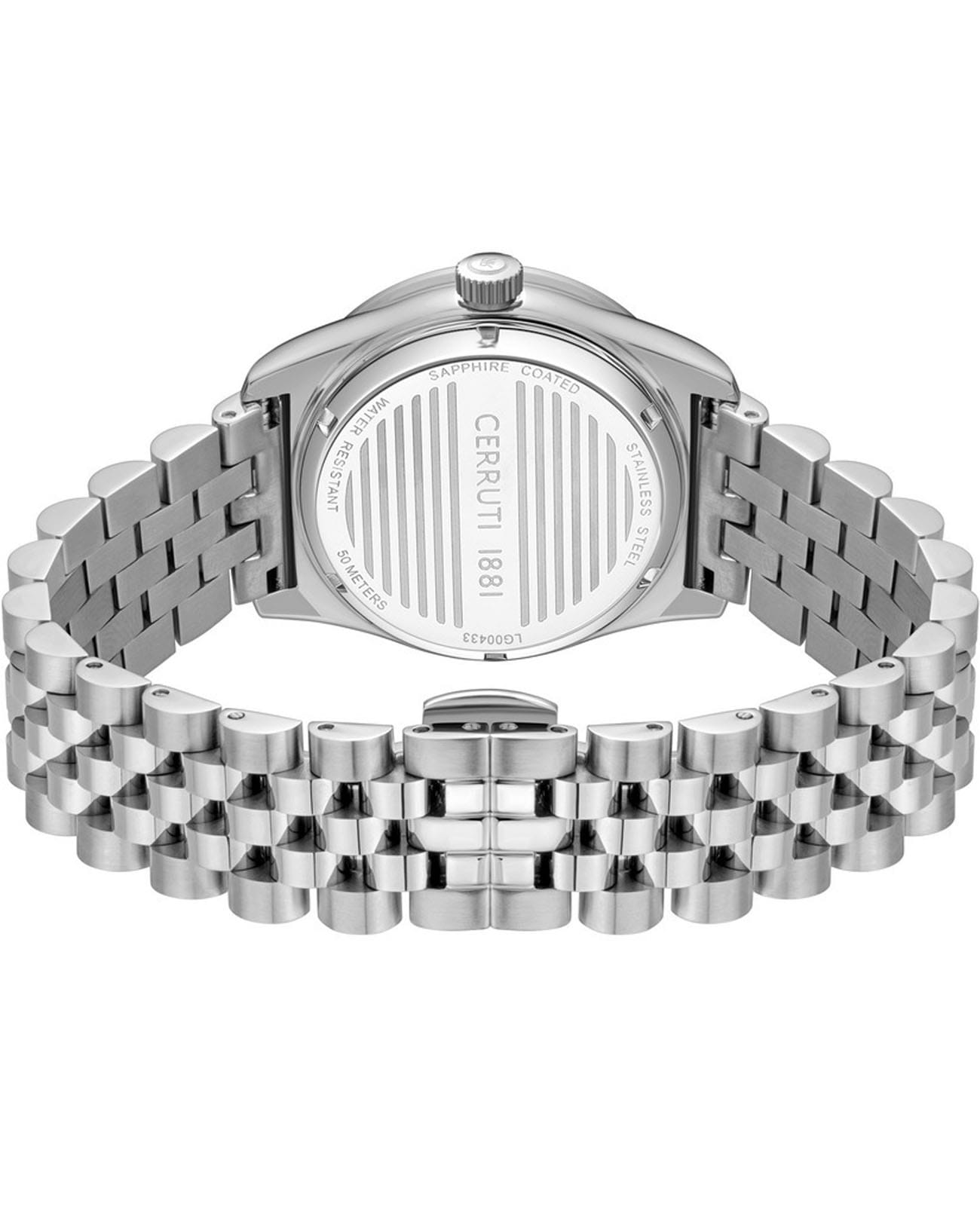 Французские женские часы CERRUTI 1881 BACCIO CIWLG0043302, кварцевый механизм с высокой точностью. Минеральное стеклоМинеральное стеклоМинеральное стекло представляет собой искусственно выращенный минерал кварца. Такое стекло отличается особой устойчивостью к повреждениям и царапинам. Уступает по некоторым качествам сапфировому стеклу. устойчивое к мелким механическим повреждениям. Корпус часов изготовлен из нержавеющей стали. Класс водозащиты: 50 метров, позволит защитить корпус от случайных брызг или капель дождя.Стрелки и метки с люминесцентным покрытиемЛюминесцентное покрытиеПозволяет считывать показания времени в темноте. Производители наносят на стрелки, часовые индексы, безель или поверхность циферблата светонакопительный состав, дающий холодное свечение.. Стальной браслет на раскладная застёжкаРаскладная застёжкаТакой тип застёжки используется только на браслетах из металла. Она никогда не раскрывается полностью, происходит разделение на 2 и более частей. Раскладывающая застёжка снизит вероятность потери часов к минимуму.. Окошко даты находится в положении 3 часа.
