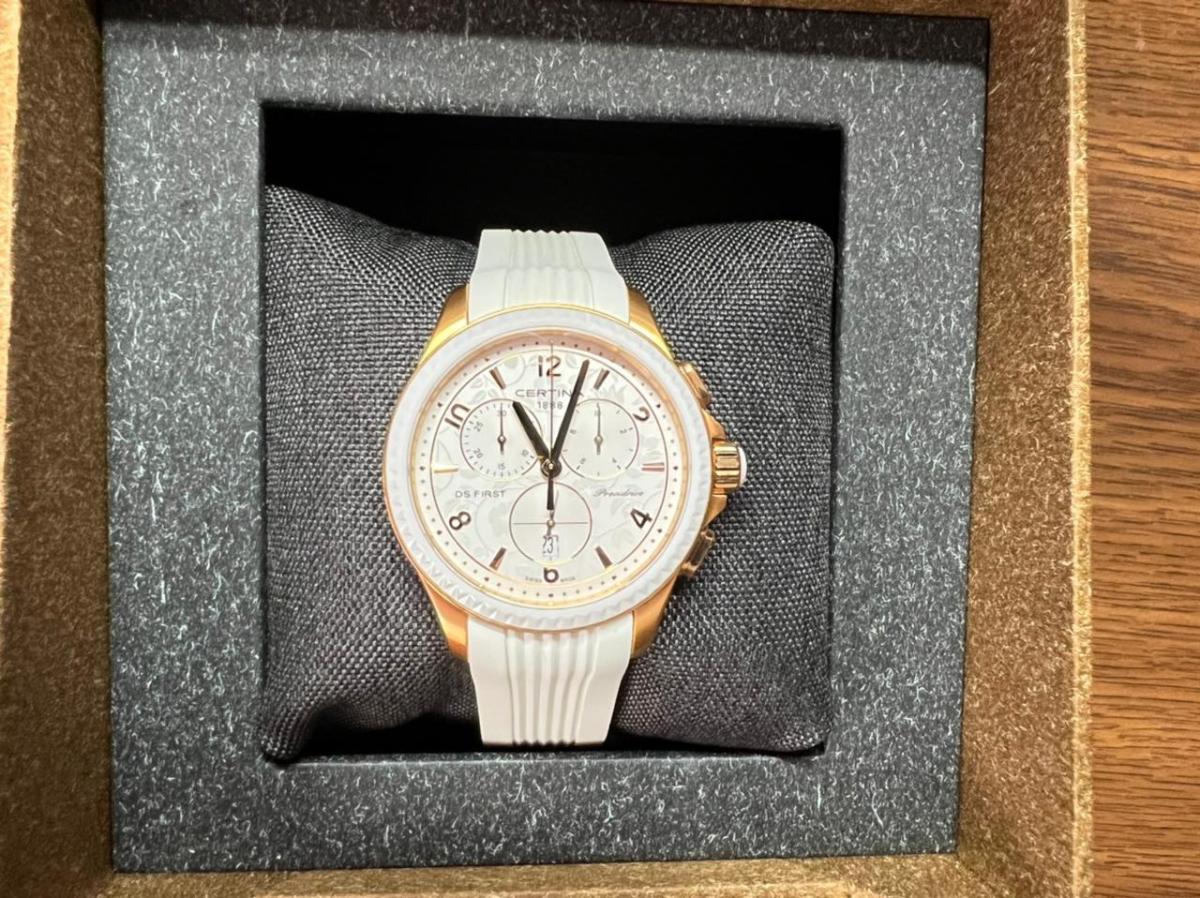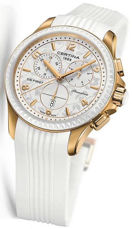 Женские швейцарские часы с сапфировым стеклом Certina C030.217.37.037.00, с белым каучуковым ремешком отлично дополнят Ваш повседневный образ. Сапфировое стекло устойчивое к появлению царапин, обладающее высокой прозрачностью. Класс водозащиты: 100 метров, позволит плавать, нырять и заниматься другими водными видами спорта. Корпус часов изготовлен из стали, позолоченного цвета.