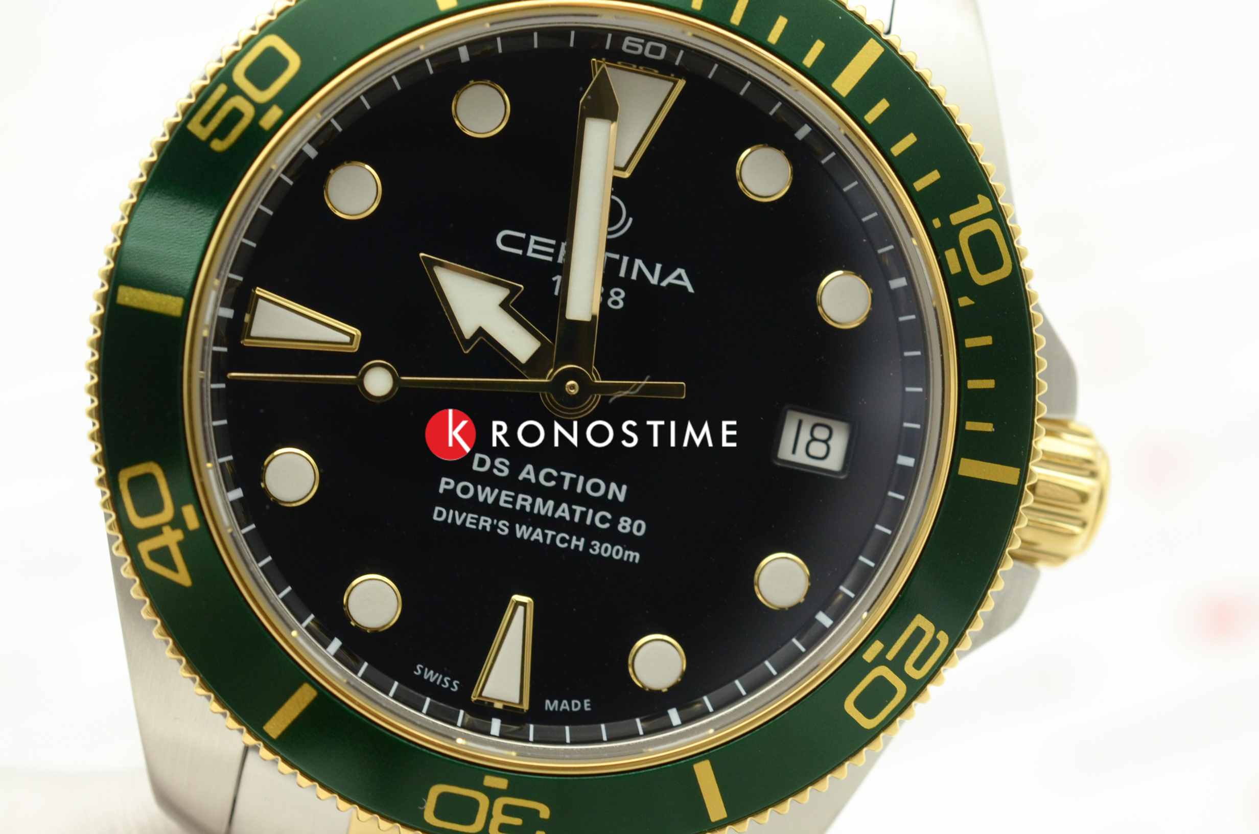 Швейцарские мужские механические часы Certina DS Action Diver 80 C0328072205101 из коллекции DS Action отражают непревзойдённый стиль с дайверским характером. Модель имеет яркий акцент в виде комбинированного циферблата. Крупная индикация времени позволяет считывать показания с циферблата в любой ситуации. Автоматический швейцарский калибр ETA Powermatic 80Powermatic 80Эксклюзивный калибр от швейцарской компании ETA с увеличенным запасом хода до 80 часов за счёт удлинённой заводной пружины. Характеризуется улучшенной системой спуска со сниженным трением. с резервом хода на 80 часов. Концепция DS ConceptDS ConceptDouble Security Concept, обозначает двойную надёжность и безупречную точность часов Certina. Двойная система защиты подразумевает обеспечение максимальной устойчивости к ударам и высоких показателей водонепроницаемости.. Сапфировое стекло. Алюминиевый вращающийся безельБезельВнешний ободок, закрепляющий стекло. В спортивных часах так называется поворотное кольцо с делениями на циферблате, выполняет роль таймера – замеряет отрезки времени на шкале. Неподвижный безель – элемент декора. Однонаправленно вращающийся безель на дайверских часах позволяет фиксировать моменты погружения и выныривания на поверхность.. Водонепроницаемость 300 метров. Люминесцентная подсветкаЛюминесцентное покрытиеПозволяет считывать показания времени в темноте. Производители наносят на стрелки, часовые индексы, безель или поверхность циферблата светонакопительный состав, дающий холодное свечение.. Стальной браслет с застёжкой, имеющей удлинение для дайверовУдлинение для дайверовЗастёжка с удлинением для дайверов представляет собой безопасное крепление, которое позволяет надевать часы поверх гидрокостюма. Гибкая застёжка удлиняется на 1-2 миллиметра.. Апертура даты. Диаметр корпуса: 38 мм. Производство и сборка: Швейцария.
