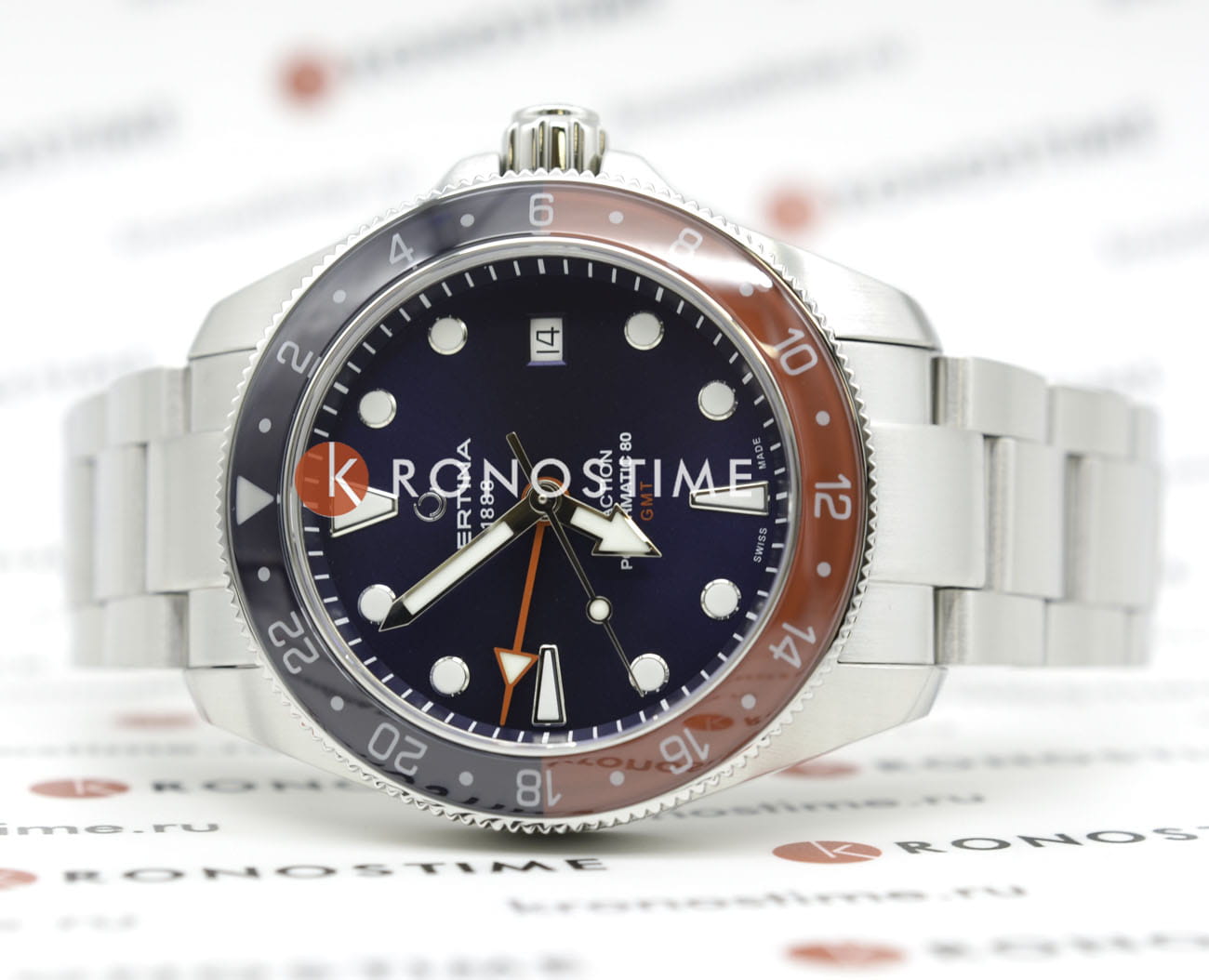 Часы DS Action GMT Powermatic 80, известные своей точностью и высокой надежностью, станут идеальным спутником в путешествиях. Благодаря отдельному 24-часовому дисплею следить за временем во втором часовом поясе стало проще, чем когда-либо.