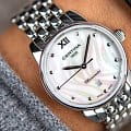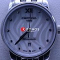 Перламутровый циферблат с привлекательным узором дарует эстетическое наслаждение. Стальной браслет из нескольких рядов переплетающихся звеньев элегантно выглядит на запястье. Часы отмечены официальным сертификатом хронометра COSCСертификат COSCОфициальный сертификат, подтверждающий то, что часы ходят с особо высокой точностью. Для получения документа часы подвергаются тестовым испытаниям, разработанным швейцарским институтом тестирования хронометров COSC. Допустимая норма для механических часов -4/+6 секунд в день, для кварцевых моделей +/- 0,07 секунд в день., ведь в основе работы находится швейцарский кварцевый механизм ETA G10.962 Precidrive™Precidrive™Инновационный кварцевый механизм Certina. Часы, оснащённые этим швейцарским калибром, приравниваются к точности к сертифицированным хронометрам, точность хода составляет +/-10 секунд в год.. Ударопрочность и водонепроницаемость 10 бар – концепция DS ConceptDS ConceptDouble Security Concept, обозначает двойную надёжность и безупречную точность часов Certina. Двойная система защиты подразумевает обеспечение максимальной устойчивости к ударам и высоких показателей водонепроницаемости.. Одностороннее антибликовое покрытие стекла из сапфира. . Индикация текущего числа, функция EOLEOLПредставляет собой систему, уведомляющую владельца часов о необходимости замены элемента питания. За 2 недели до полного разряда батарейки секундная стрелка перестаёт ходить чётко и начинает перепрыгивать на 3-4 деления.. Диаметр корпуса: 27,5 мм.