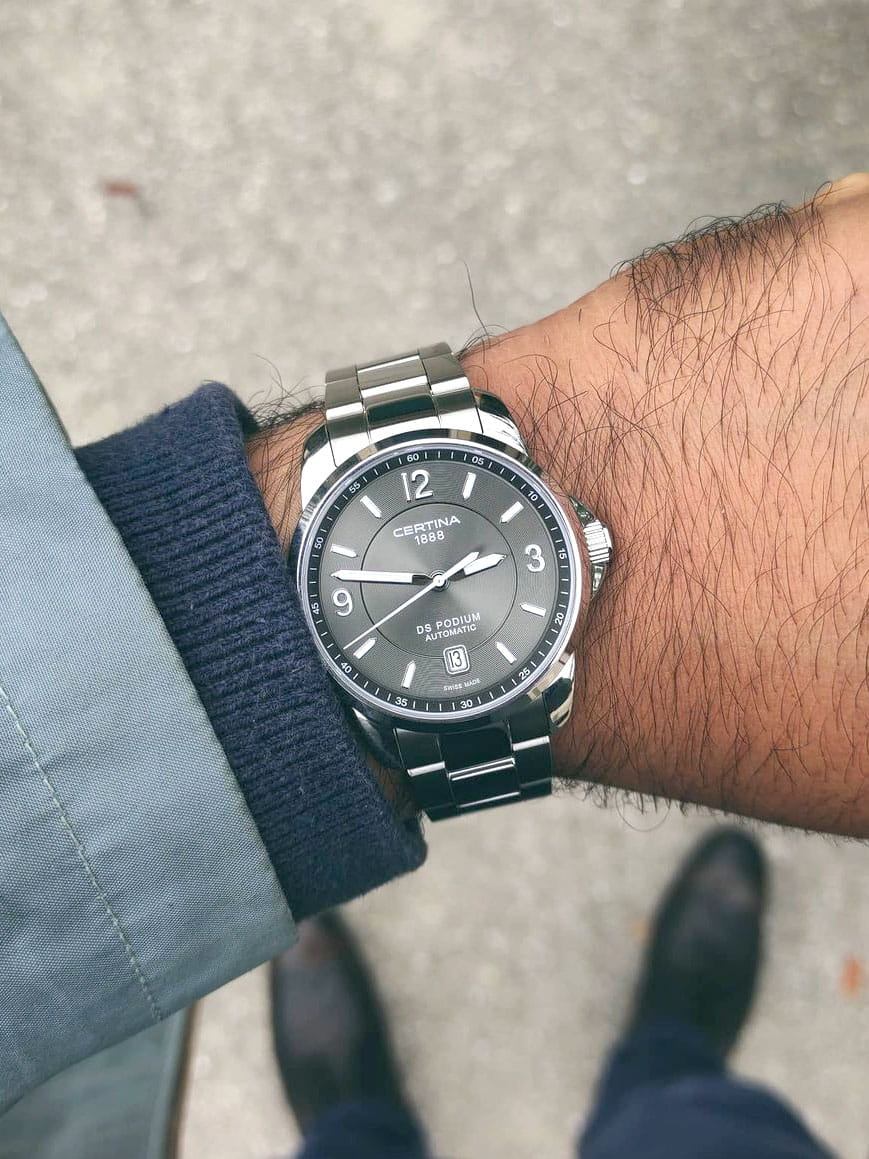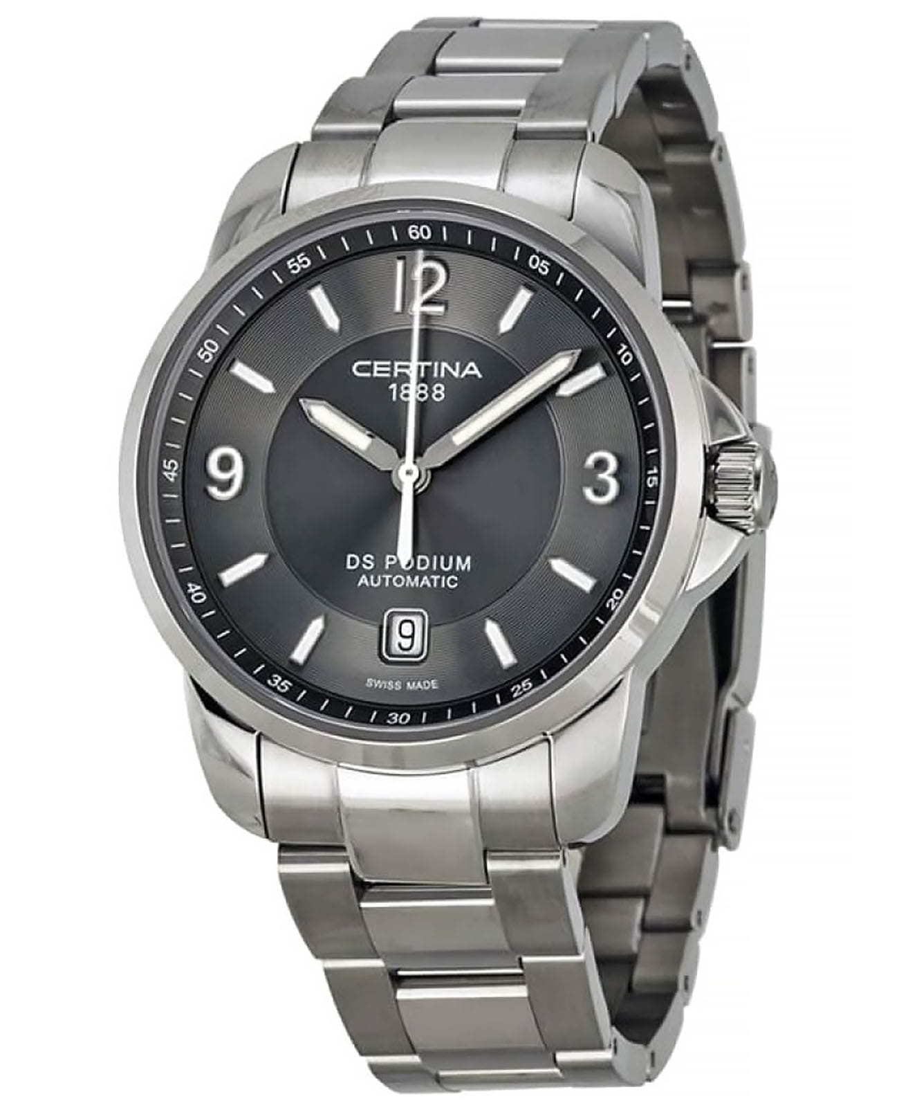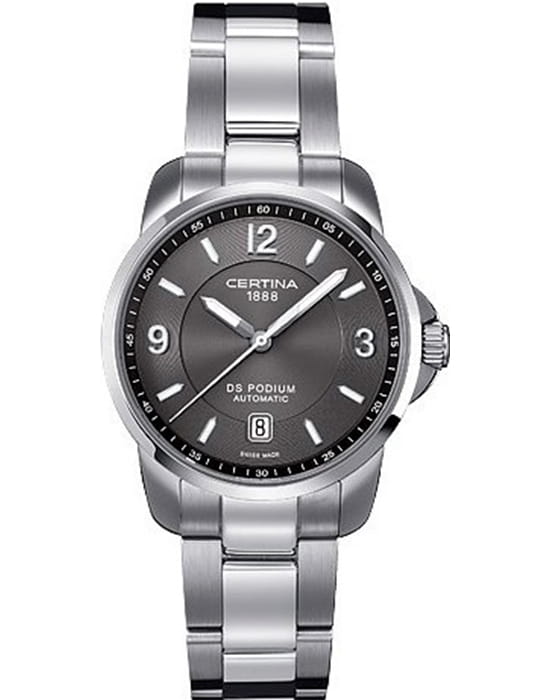 Спортивный дух и элегантность великолепно сочетаются в этих устойчивых к износу часах: классическая модель DS Podium будет прекрасно смотреться на любом торжественном мероприятии. Лаконичный циферблат с окошком даты на 6 часах улучшает читаемость времени и делает дизайн минималистическим. Люминесцентное покрытиеЛюминесцентное покрытиеПозволяет считывать показания времени в темноте. Производители наносят на стрелки, часовые индексы, безель или поверхность циферблата светонакопительный состав, дающий холодное свечение. цифр, индексов, часовой и минутной стрелок. Precidrive™Precidrive™Инновационный кварцевый механизм Certina. Часы, оснащённые этим швейцарским калибром, приравниваются к точности к сертифицированным хронометрам, точность хода составляет +/-10 секунд в год. - это название инновационной технологии, которая делает часы Certina чрезвычайно точными. Часы с кварцевыми калибрами Precidrive™Precidrive™Инновационный кварцевый механизм Certina. Часы, оснащённые этим швейцарским калибром, приравниваются к точности к сертифицированным хронометрам, точность хода составляет +/-10 секунд в год. приближаются по точности к хронометрам. С учетом погрешности в +/-10 секунд в год, часыPrecidrive™Precidrive™Инновационный кварцевый механизм Certina. Часы, оснащённые этим швейцарским калибром, приравниваются к точности к сертифицированным хронометрам, точность хода составляет +/-10 секунд в год. в 8-10 раз более точны, чем обычные кварцевые.