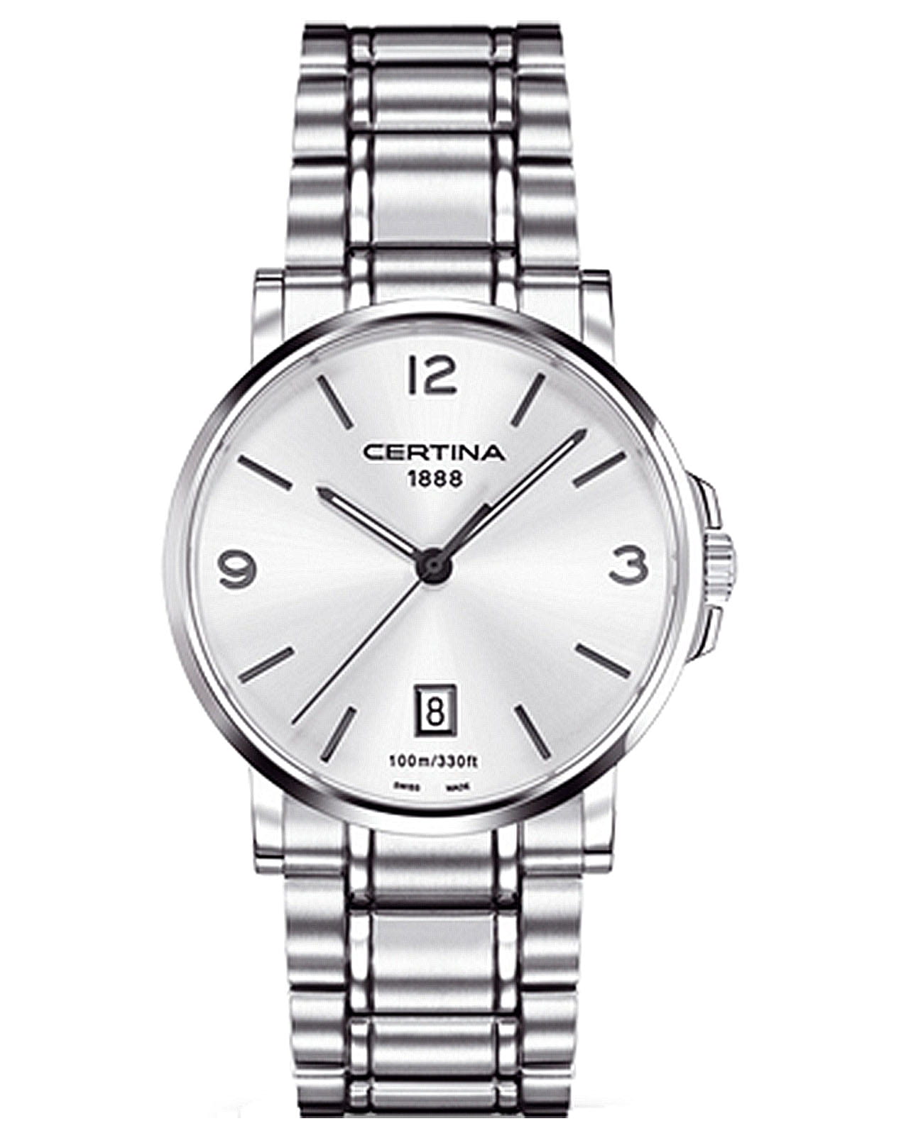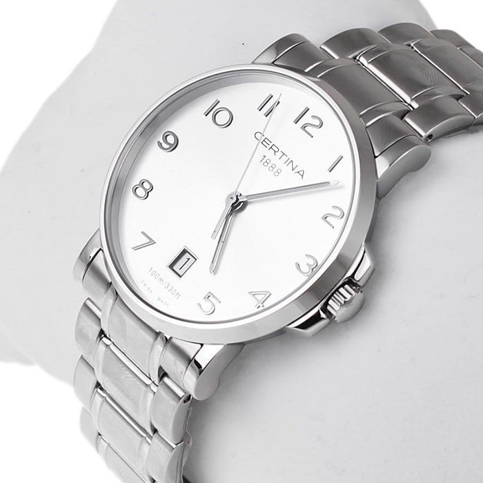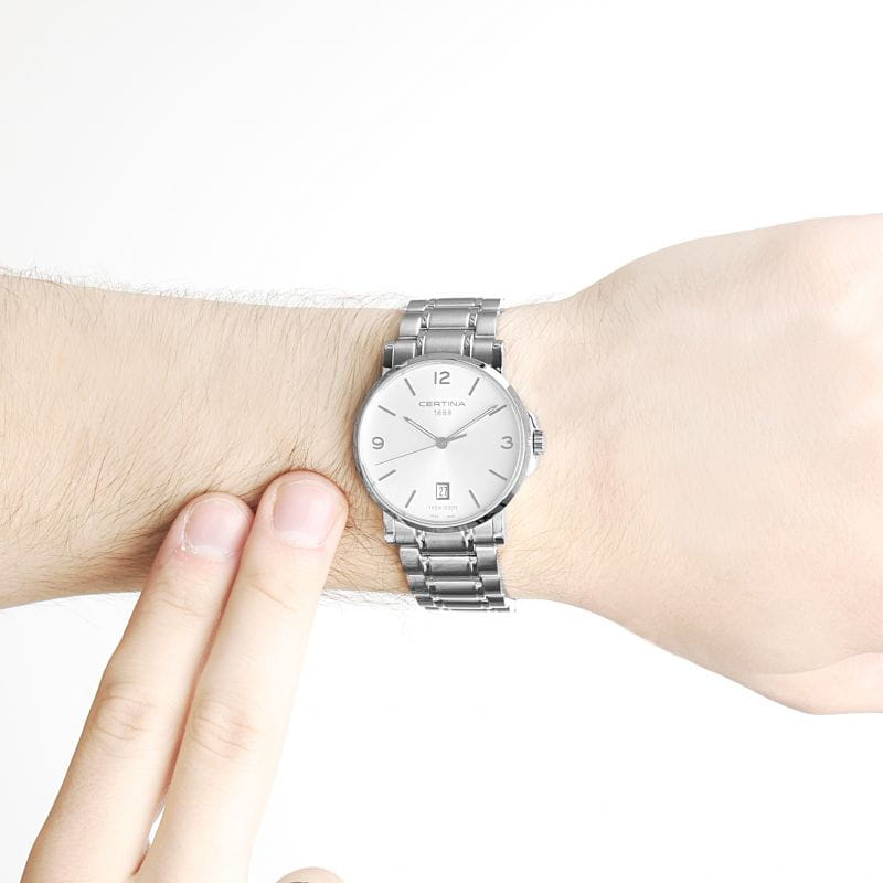 Часы с ударопрочным корпусомУдаропрочный корпусМеханизм заключён в корпус, выполненный из современных материалов, устойчивых к ударам, механическим повреждениям и падению с высоты: инновационный пластик, карбон, нержавеющая сталь, титан. сделаны из нержавеющей стали 316L. Высокая точность хода обеспечивается за счёт швейцарского кварцевого механизма F05.411 Precidrive™Precidrive™Инновационный кварцевый механизм Certina. Часы, оснащённые этим швейцарским калибром, приравниваются к точности к сертифицированным хронометрам, точность хода составляет +/-10 секунд в год.. Сапфировое стекло. Люминесцентная подсветкаЛюминесцентное покрытиеПозволяет считывать показания времени в темноте. Производители наносят на стрелки, часовые индексы, безель или поверхность циферблата светонакопительный состав, дающий холодное свечение.. Водозащита WR 100. Апертура даты.