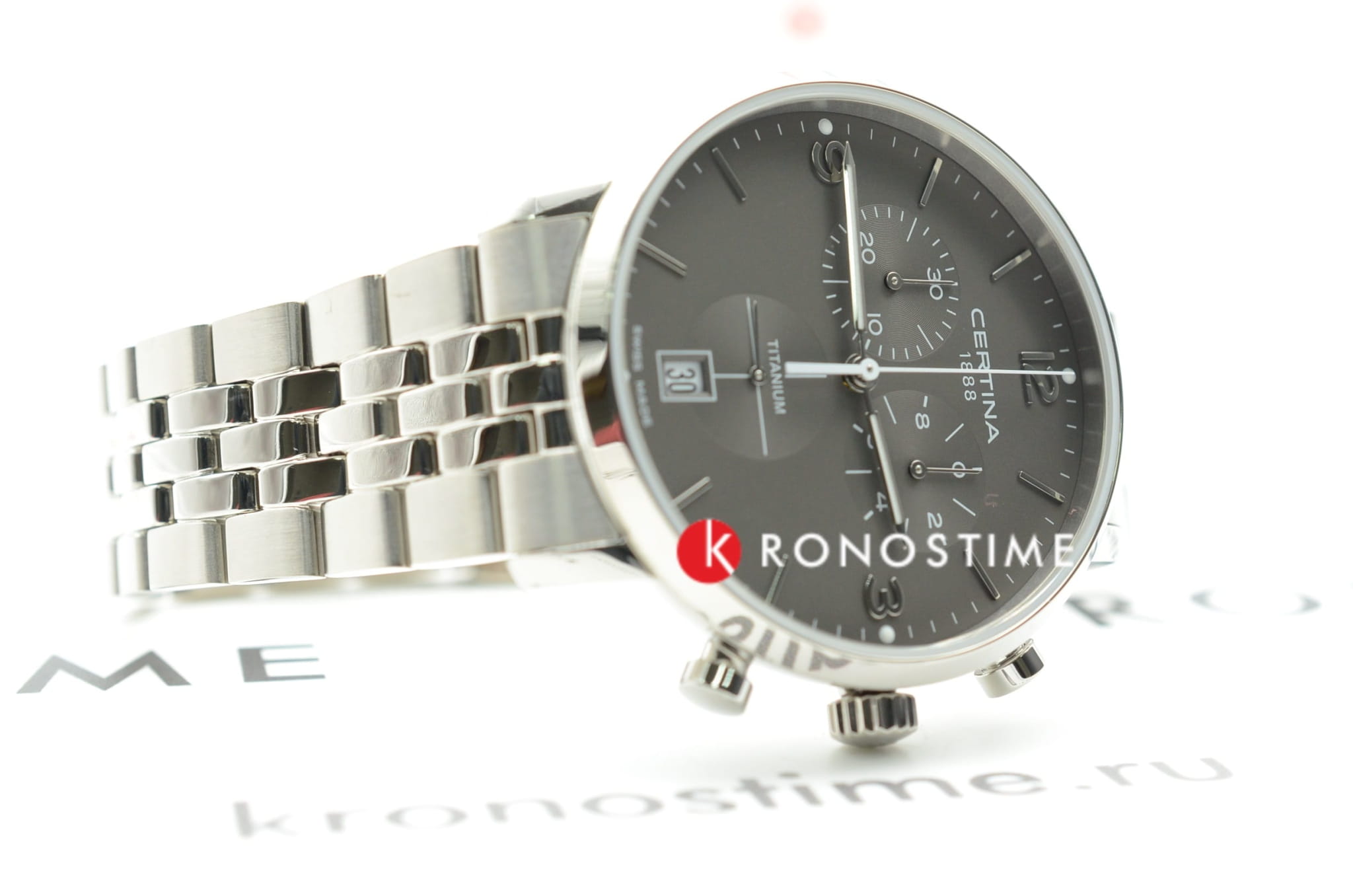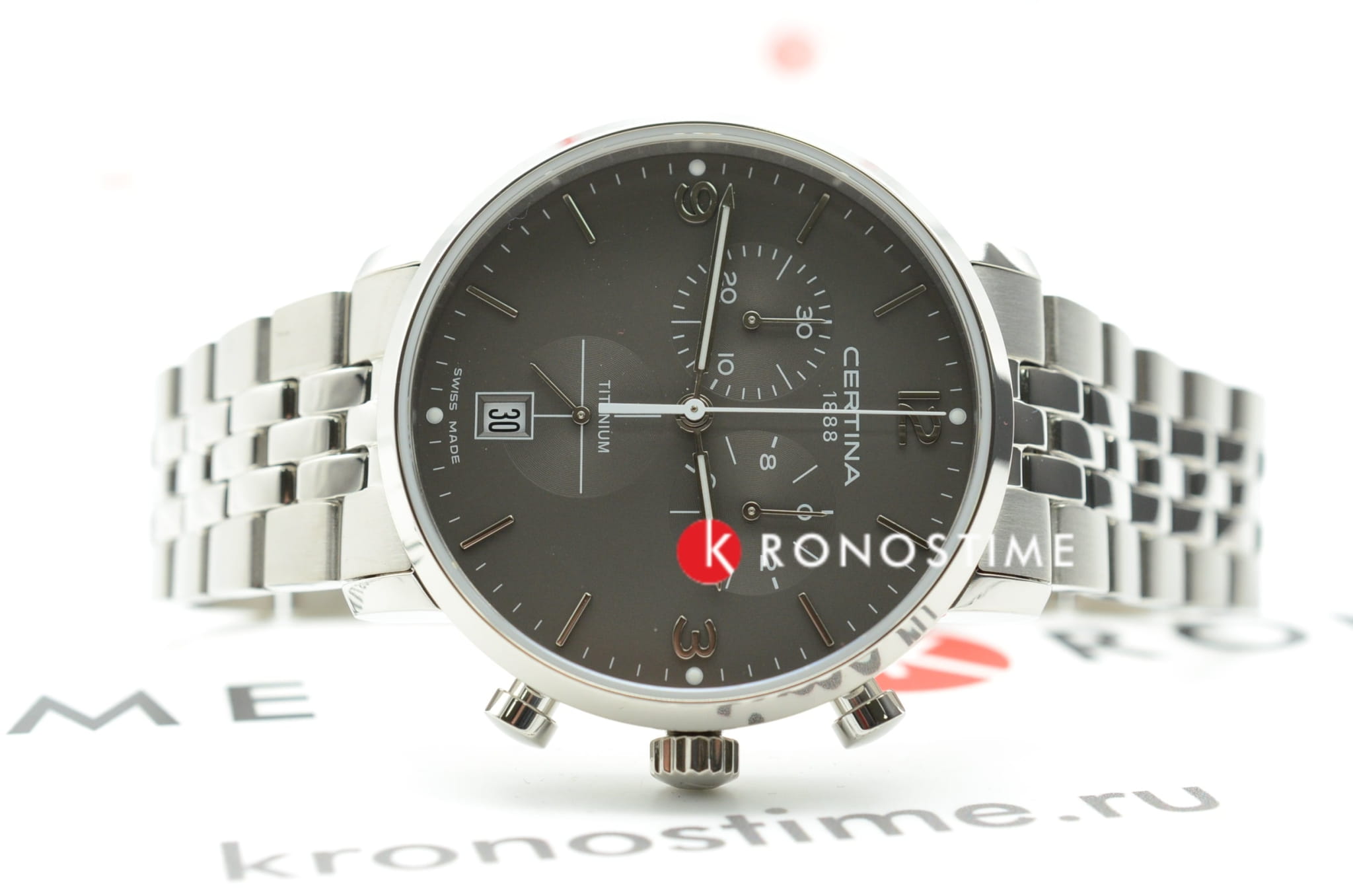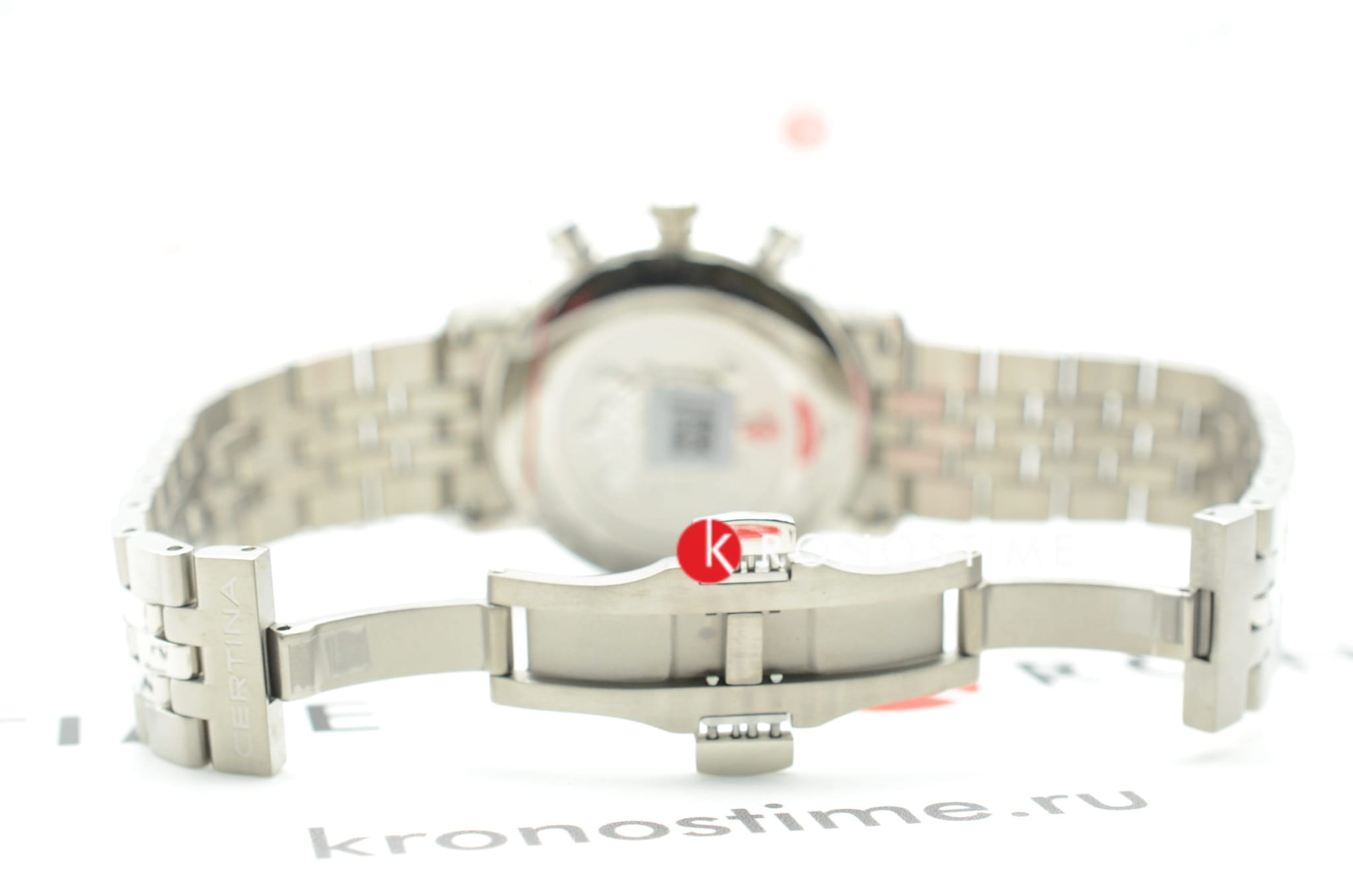 Брендовая модель поможет дополнить образ современного городского жителя. Классический стальной браслет с системой быстрой смены позволяет экспериментировать с образами. ХронографХронографФункция позволяет измерять отрезки времени с особой точностью: часы, минуты, секунды. Верным признаком хронографа является наличие на циферблате 3 дополнительных окошек-счётчиков. наделён черным циферблатом, оттенок приятно гармонирует с серебристым блеском ударопрочного корпусаУдаропрочный корпусМеханизм заключён в корпус, выполненный из современных материалов, устойчивых к ударам, механическим повреждениям и падению с высоты: инновационный пластик, карбон, нержавеющая сталь, титан.. Швейцарский кварцевый механизм ETA G10.212. Концепция Двойной надёжности DS ConceptDS ConceptDouble Security Concept, обозначает двойную надёжность и безупречную точность часов Certina. Двойная система защиты подразумевает обеспечение максимальной устойчивости к ударам и высоких показателей водонепроницаемости.. Сапфировое стекло с обработкой «антиблик». Водостойкость при давлении до 10 бар. Диаметр корпуса: 42 мм.