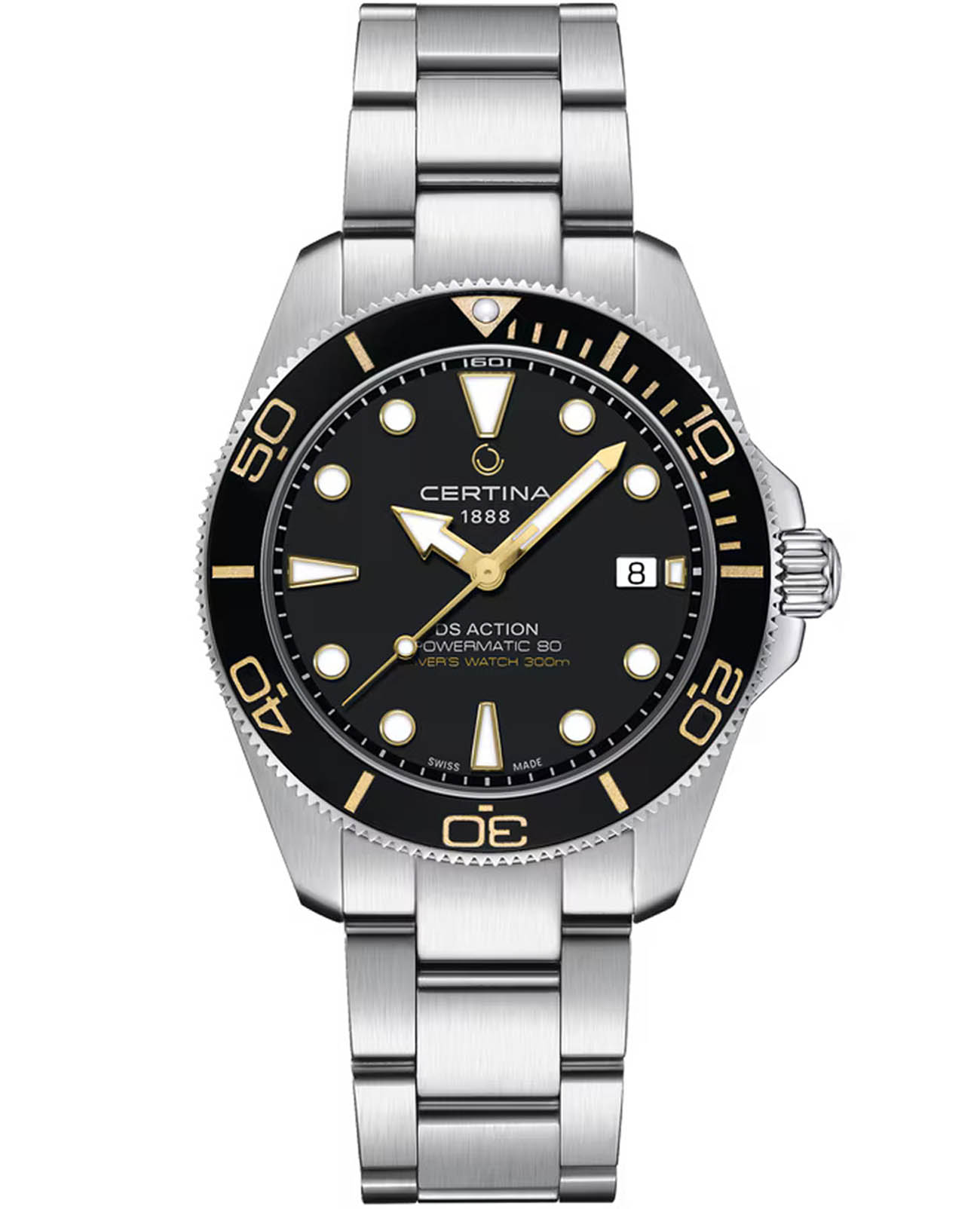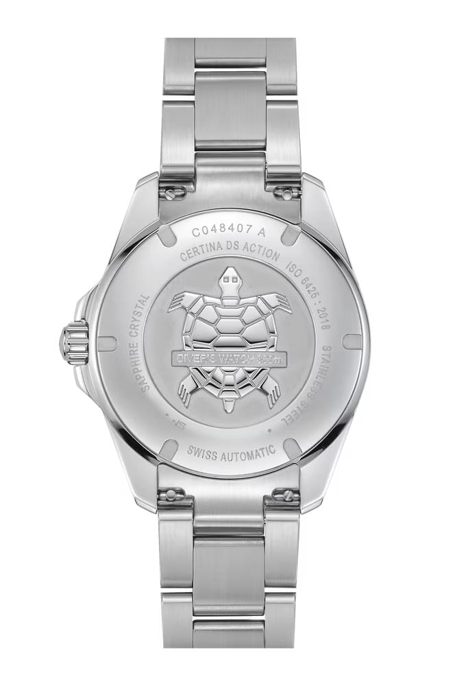 Мужские механические часы Certina DS Action C048.407.11.051.01 с автоматическим механизмом — это надёжный аксессуар, сочетающий в себе швейцарское качество и функциональность. Модель оснащена калибром POWERMATIC 80.611, обеспечивающим запас хода до 80 часов, что делает её удобной для повседневного использования. Корпус выполнен из нержавеющей стали диаметром 40,5 мм и толщиной 14,1 мм, а его поверхность защищена сапфировым стекломСапфировое стеклоПрочный и надёжный материал из кристалла сапфира синтетического происхождения, характеризующийся особой твёрдостью и устойчивостью к царапинам и повреждениям., устойчивым к царапинам и механическим повреждениям. Браслет из стали серебристого цвета оснащён Раскладная застёжкаРаскладная застёжкаТакой тип застёжки используется только на браслетах из металла. Она никогда не раскрывается полностью, происходит разделение на 2 и более частей. Раскладывающая застёжка снизит вероятность потери часов к минимуму., обеспечивающей комфорт и надёжную фиксацию. Часы с балансом из Nivachron™Nivachron™Специально разработанный инновационный сплав Nivachron™ повышает устойчивость часов к воздействию магнитных полей., обеспечивающим высокую устойчивость к магнитным полям и ударам. Циферблат черного цвета дополнен точечными метками, а стрелки и индексы имеют Люминесцентное покрытиеЛюминесцентное покрытиеПозволяет считывать показания времени в темноте. Производители наносят на стрелки, часовые индексы, безель или поверхность циферблата светонакопительный состав, дающий холодное свечение., обеспечивающее отличную читаемость даже в условиях слабого освещения. Вращающийся безельБезельВнешний ободок, закрепляющий стекло. В спортивных часах так называется поворотное кольцо с делениями на циферблате, выполняет роль таймера – замеряет отрезки времени на шкале. Неподвижный безель – элемент декора. Однонаправленно вращающийся безель на дайверских часах позволяет фиксировать моменты погружения и выныривания на поверхность. с керамической вставкой добавляет модели спортивный характер. Часы водонепроницаемы более чем на 300 метров , что позволяет использовать их при плавании и других водных активностях без глубокого погружения. Эти часы станут универсальным аксессуаром для тех, кто ценит сочетание стиля, функциональности и надёжности — идеальный выбор для повседневной носки и активного образа жизни.